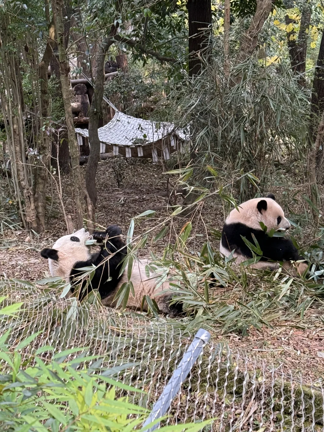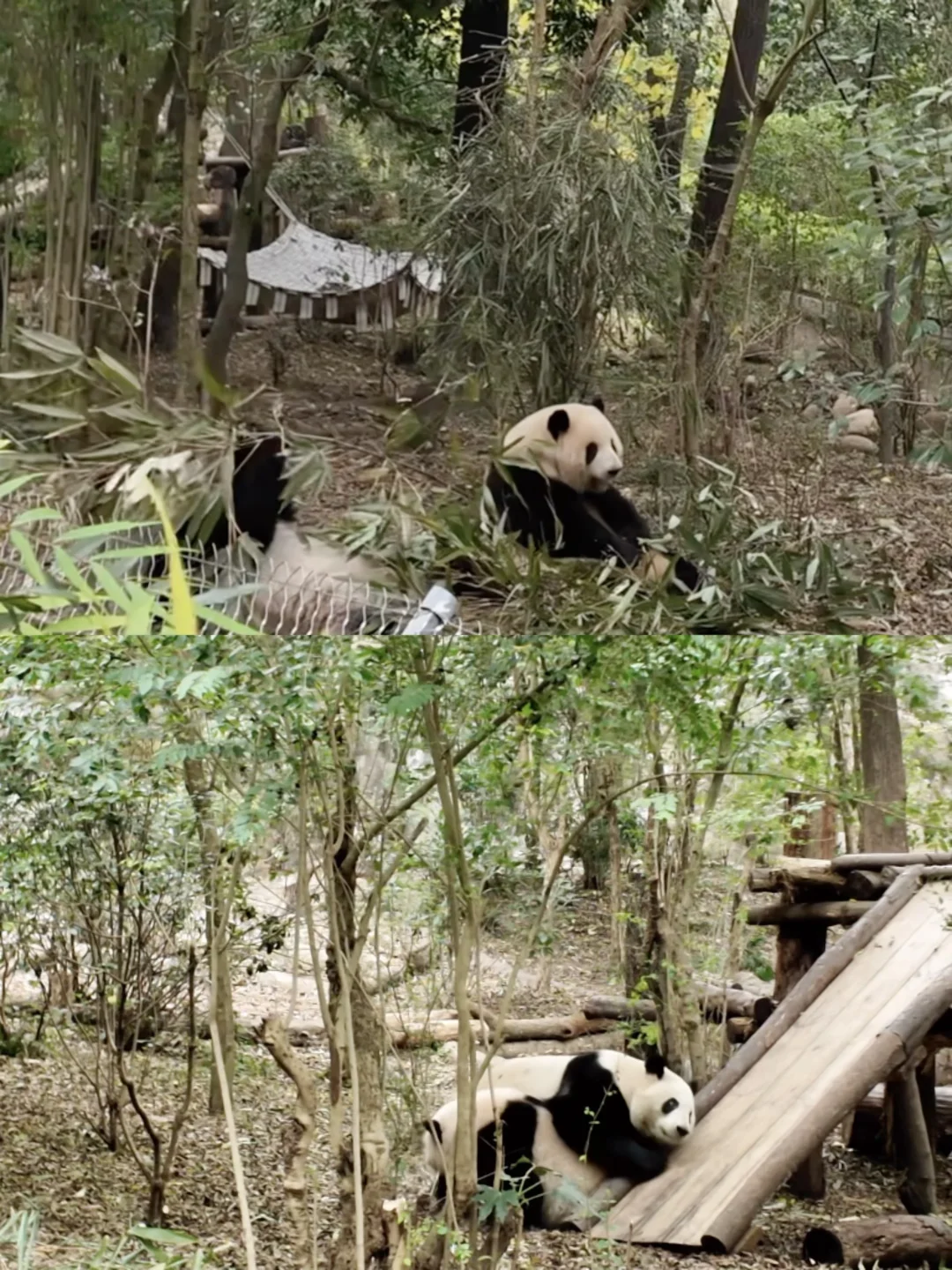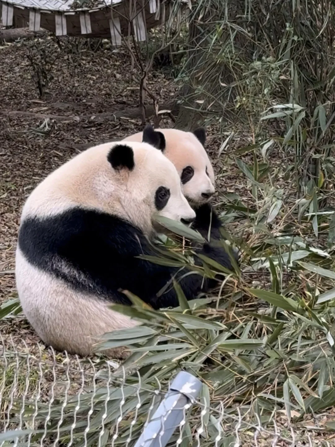 1️⃣14:50-15:17:排队27分钟,看到花花和和叶背对背吃竹子,三角饭团背影萌化我的心。