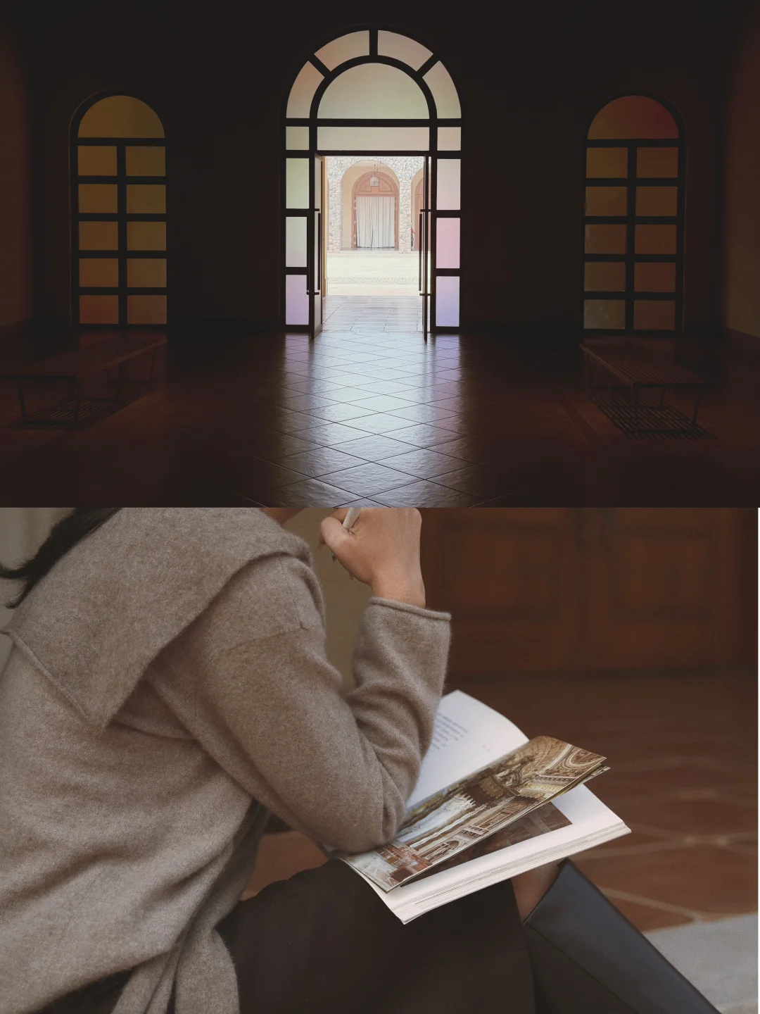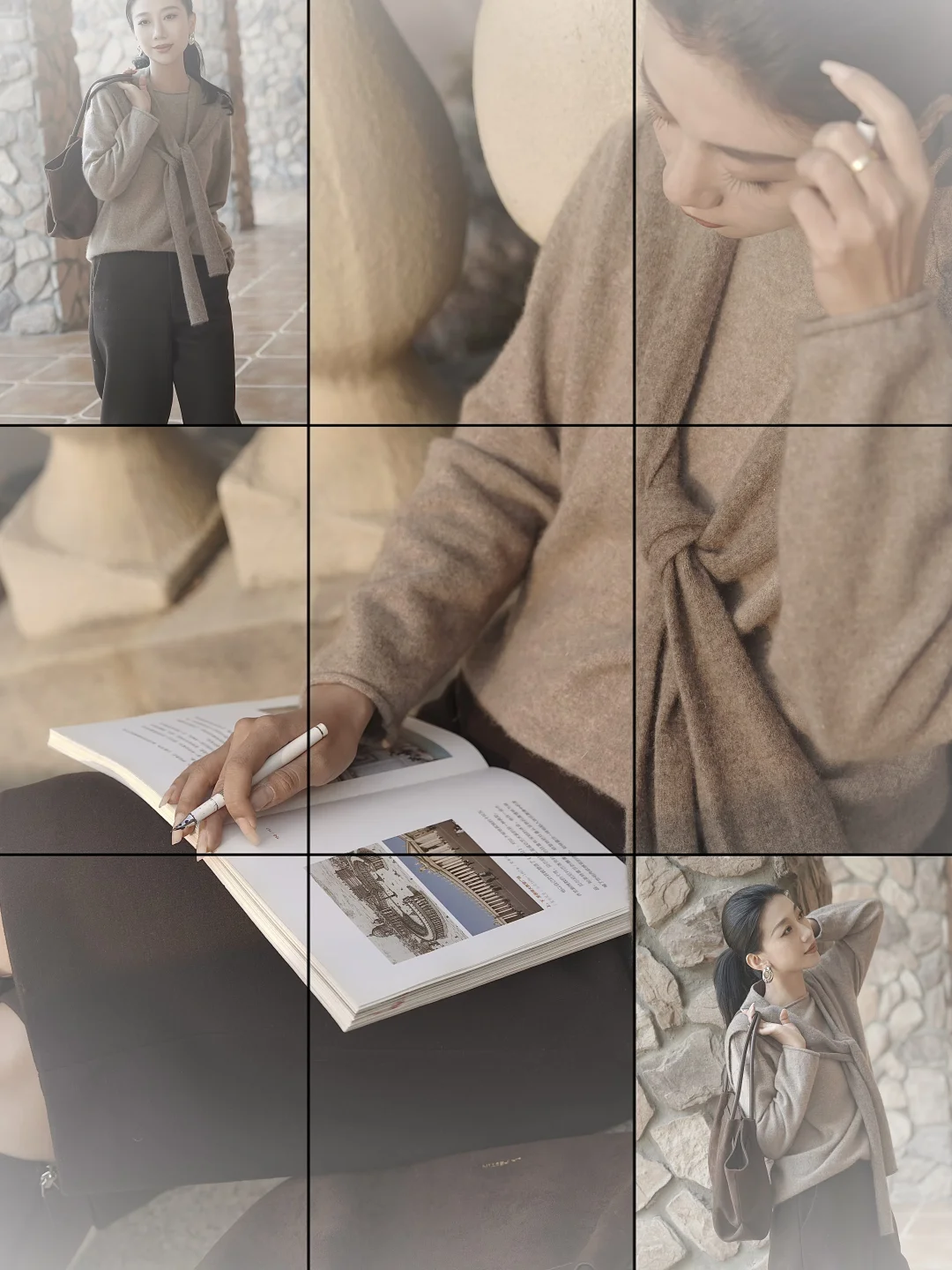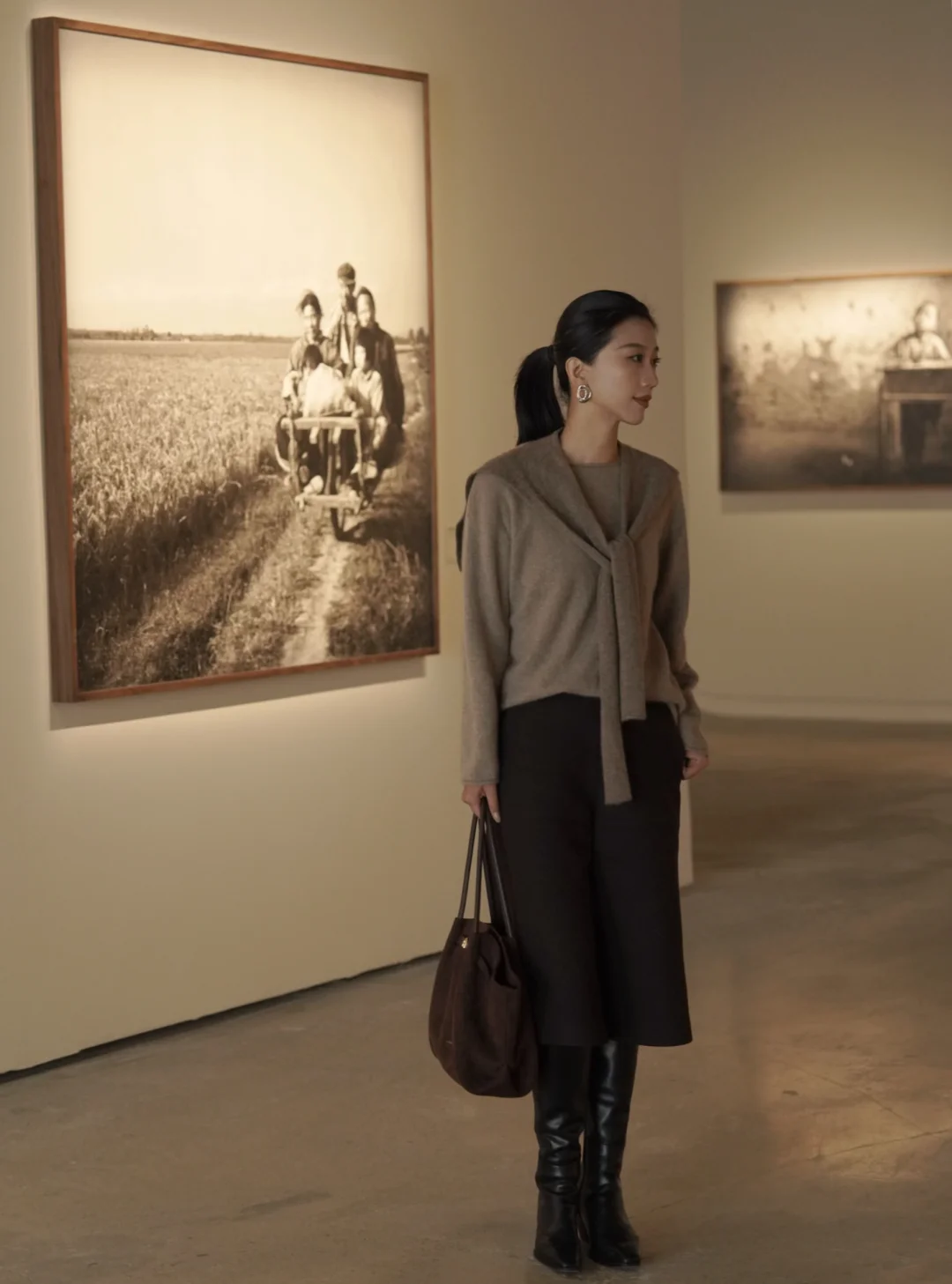 午后,踏入那座修得像老式古堡的影像馆。长廊里,树枝滤下的光影在墙面游走,斑驳得像未显影的底片。 这里正展出摄影家一生的记录。墙上的每一帧,都是被时光定格的呼吸。我穿着柔软的针织衫,贴着肌肤,泛起云朵般的暖意。这柔软恰如馆中布展里微微光影和氛围——舒服得恰到好处。 慢慢走着,仿佛自己也走进了某张照片的宁静里——某个未被命名的午后,光线恰好,心事很轻。 后来索性在长廊边坐下,翻开随身带来的书。翻页声很轻,像光阴本身的脚步。影像在墙上静止,树影在墙上移动,而我的思绪浮沉其间。 忽然觉得,记忆也是一位忠实的摄影家:这个下午,这片光影,这份平静的充盈,已被悄悄显影在心上了。针织牦牛绒的暖意渗进肌肤,当这个午后渗进记忆,生命便为自己显影了一张难以褪色的底片。
