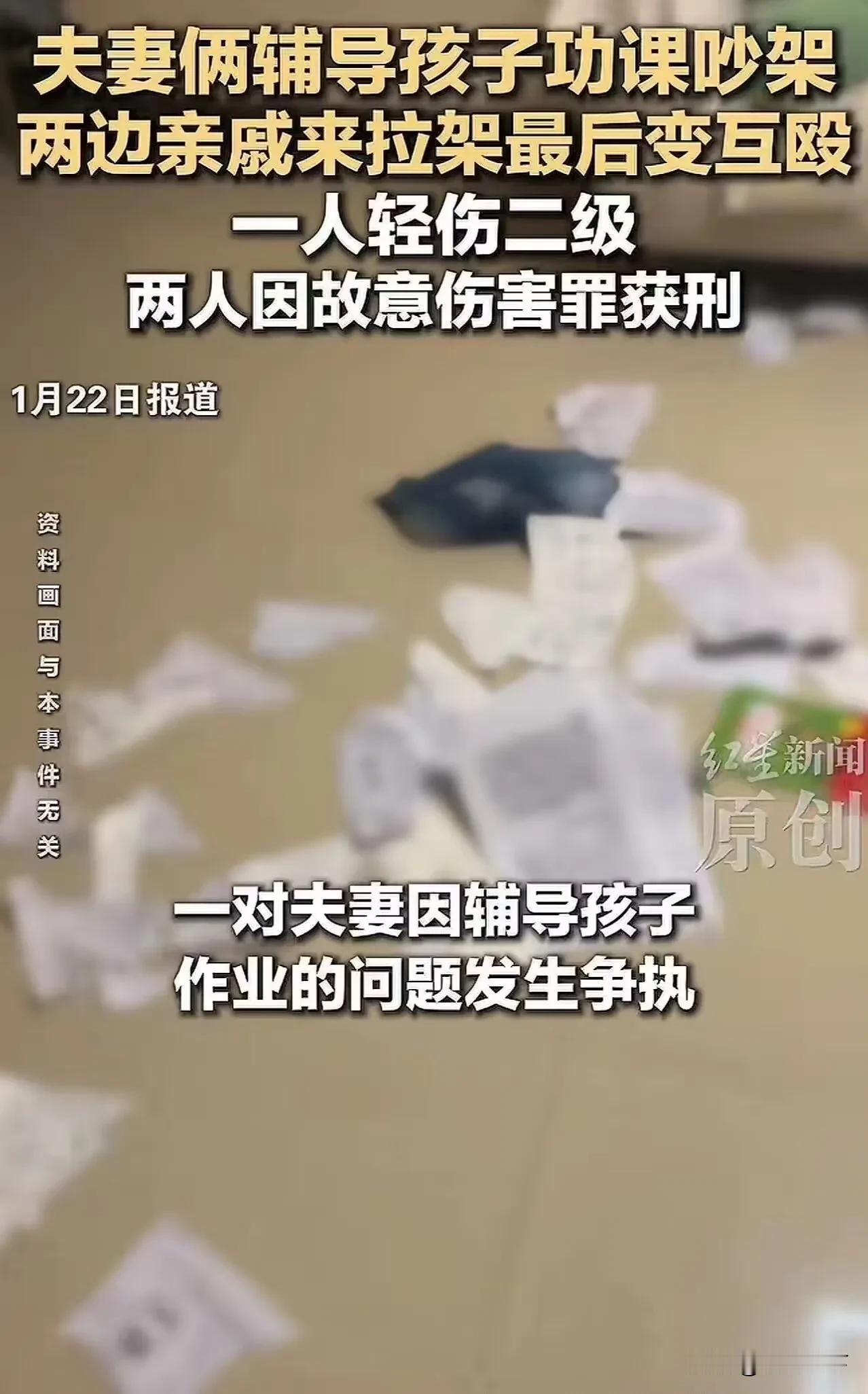 悲剧!山东,一对夫妻因辅导孩子功课起争执,双方亲戚来劝架,结果竟演变成群殴血案,多人受伤、两人入狱!网友:这下完犊子了,作业没写成,家都散了! 这事儿最近刷爆全网,看完真的让人后背发凉——本来是再常见不过的辅导孩子写作业,怎么就闹到多人受伤、两人入狱的地步? 说出来你可能都不敢信,事发当天晚上,山东的老张和妻子小李正陪着孩子赶作业,就因为孩子一道数学题磨了半小时没做出来,两口子吵了起来。小李觉得老张平时不管娃,一辅导就瞎指挥;老张嫌小李太急躁,教孩子没耐心,你一言我一语越吵越凶,最后直接摔了作业本。小李气不过,哭着给妹妹打了电话,说自己被姐夫欺负了;老张也咽不下这口气,立马喊来弟弟“撑场面”。 谁能想到,亲戚这一“劝架”,直接把家庭矛盾升级成了群殴血案!小李的妹妹和妹夫赶到后,一进门就指着老张鼻子骂,妹夫更是先动手揪住了老张的衣领。老张和弟弟也没含糊,顺手拿起桌上的酒瓶、塑料板凳就往对方身上砸,客厅瞬间变成了“战场”。孩子吓得缩在墙角嚎啕大哭,邻居听见动静赶紧报警,这才制止了这场闹剧。 结果呢?法医鉴定下来,小李和妹妹受了轻伤,老张和妹夫是轻微伤,但等待他们的是法律的制裁:妹夫被行政拘留12天罚款500元,老张和弟弟因为故意伤害罪,分别被判了一年和六个月有期徒刑。好好的三个家庭,就因为一本作业,一个入狱、一个被拘留,孩子没人好好照顾,好好的家彻底散了。 网友的评论简直说出了无数家长的心声:“这不就是辅导作业时的我吗?前一秒母慈子孝,后一秒鸡飞狗跳”“本来是为了孩子好,最后却害了孩子”“亲戚劝架纯属火上浇油,清官难断家务事啊”。其实这事儿看着极端,但背后藏着的,是千万家长的教育焦虑。 林州市人民政府分享的调解案例里,有对夫妻也总因为辅导作业吵架,最后调解员点醒他们:“你们目标都是爱孩子,为啥非要互相指责?”后来两人分工合作,一个辅导功课一个带孩子户外活动,矛盾全没了。反观山东这起血案,本来是小事,却因为没人愿意冷静,没人懂得换位思考,最后酿成大错。 最让人心疼的是那个缩在角落哭的孩子,他以后看到作业,会不会想起那天家里的打斗和父母的争执?家长的情绪失控,受伤最深的永远是孩子。其实辅导作业哪有那么难,少点焦虑、多点耐心,实在不行分工合作,总比打打闹闹毁了家庭强。 你有没有过辅导作业情绪失控的经历?遇到这种情况该怎么冷静下来?欢迎在评论区聊聊,咱们一起避坑,别让作业变成家庭矛盾的导火索!