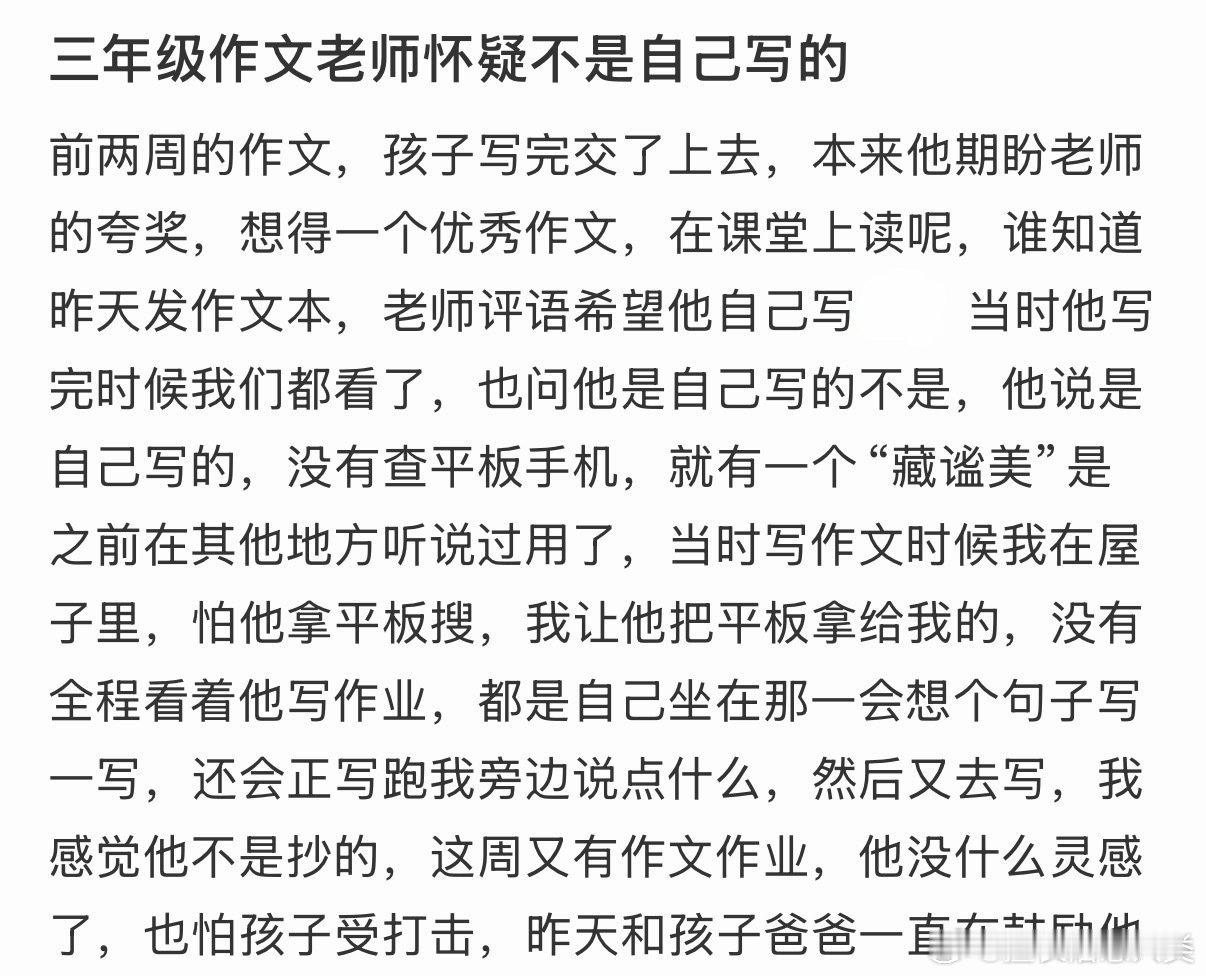三年级作文老师怀疑不是自己写的。