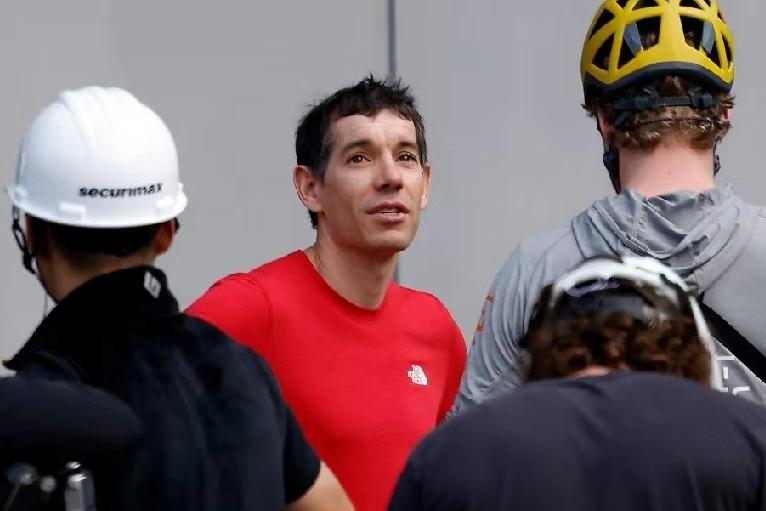 1月25日,林佳龙对媒体说:美国极限攀岩运动员霍诺德挑战徒手攀爬台北101,勇气