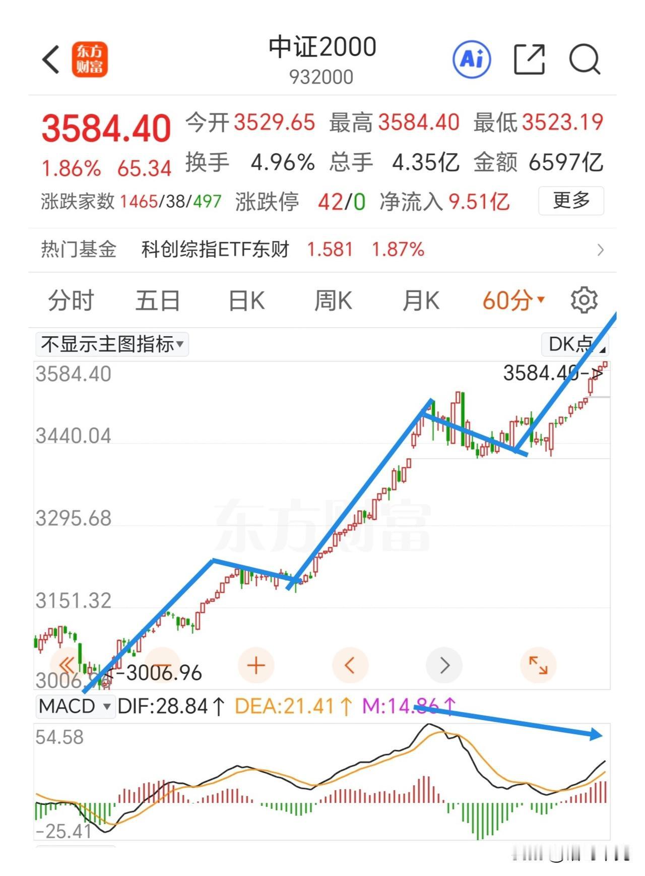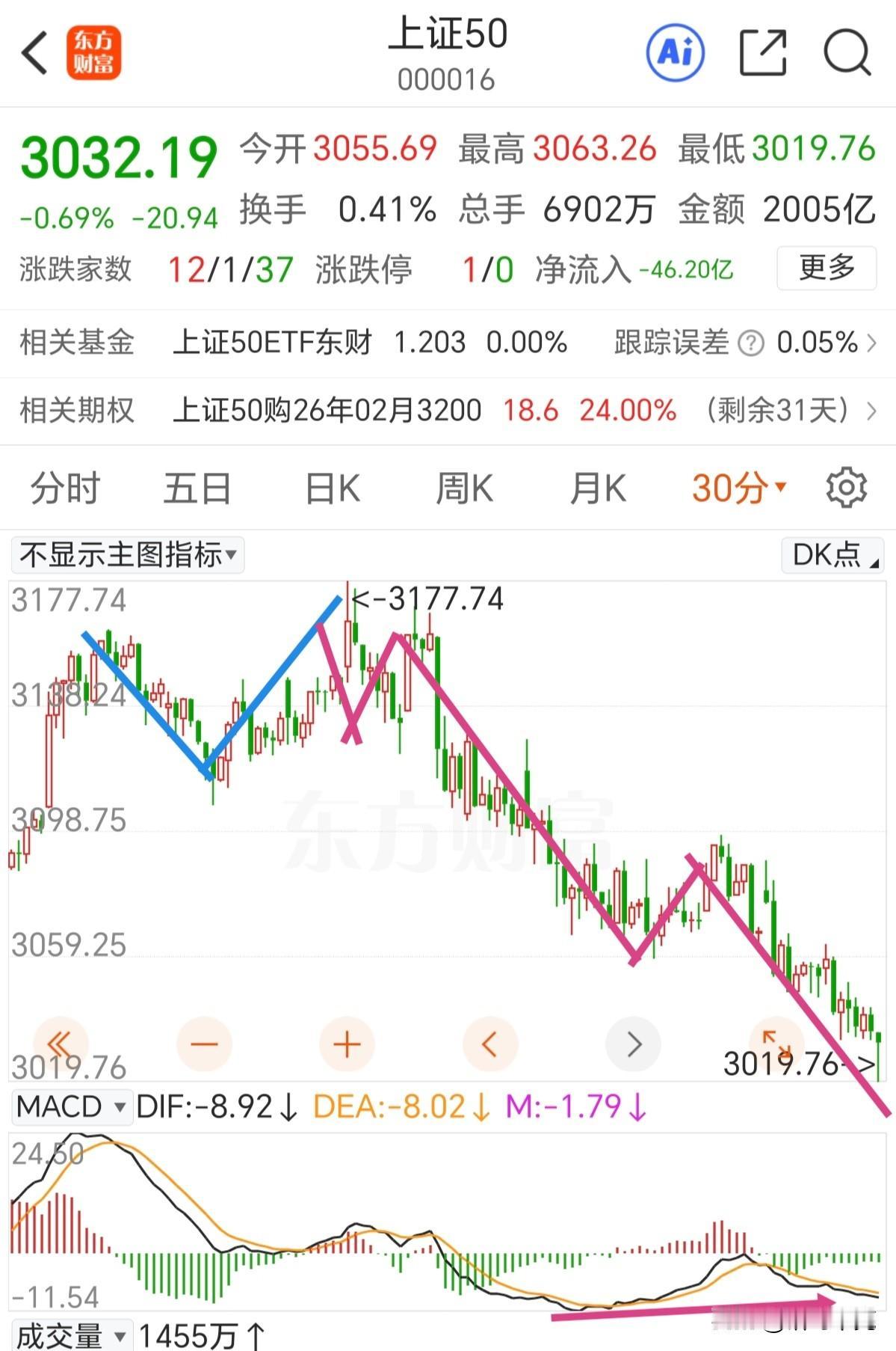二八分化行情可能要反转了,警惕权重拉升,小盘出货!中证2000加速冲高的时候要小心了。 现在必须分开谈中小盘和上证50指数。先看上证50指数,日线上回踩了小双底的颈线位置,30分钟走势上经过了3-3-5的调整结构,在这个5浪里还走了延长的微5浪结构,MACD底背离,指标超卖,有技术反弹需求。个人认为已经调整到位了,结构已经做的很完整了,超跌反弹一触即发。 知行合一,个人在上周五清仓了白酒建仓上证50的某只标的。现在看来做的不是很完美,主要还是白酒的走势和上证50走势很类似,都有超跌反弹的技术需求。还是担心白酒作为周期行业受消费回暖的影响太大,只不过现在已经处于底部了,耐心拿长线就好了。😮💨心态还是受了影响,想的太多,担心太多,以后要改变想法坚定一些。相信逻辑,相信结构。 中证2000已经开始走第五微浪上涨了,60分钟开始出现macd顶背离,背离了并不是就到顶了,往往市场情绪高涨的时候会背了又背。卖的早,容易卖飞;卖的晚,容易被套,只要跌破5日线就要坚决减仓了。 总体上,大盘有超跌反弹的需求,中证2000还有冲高的动力。问题就是大盘起来的时候中小盘跟不跟,是权重拉升题材出货,还是大小盘一起冲高,这需要观察。 不盲目乐观,不恐慌惊惧。 指数拉抬 上证180指数 大a指数 指数行情 指数 沪a指数 中小盘指数