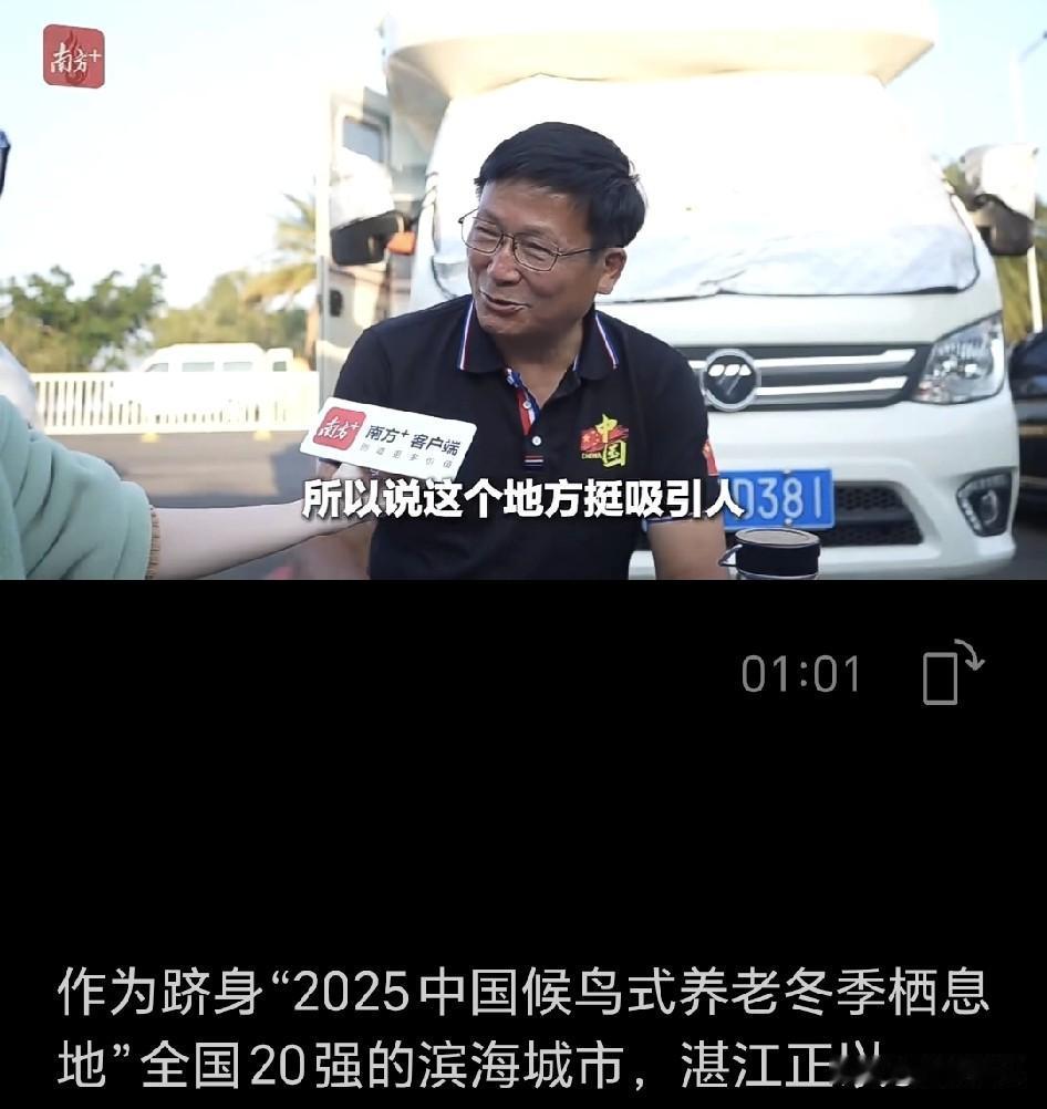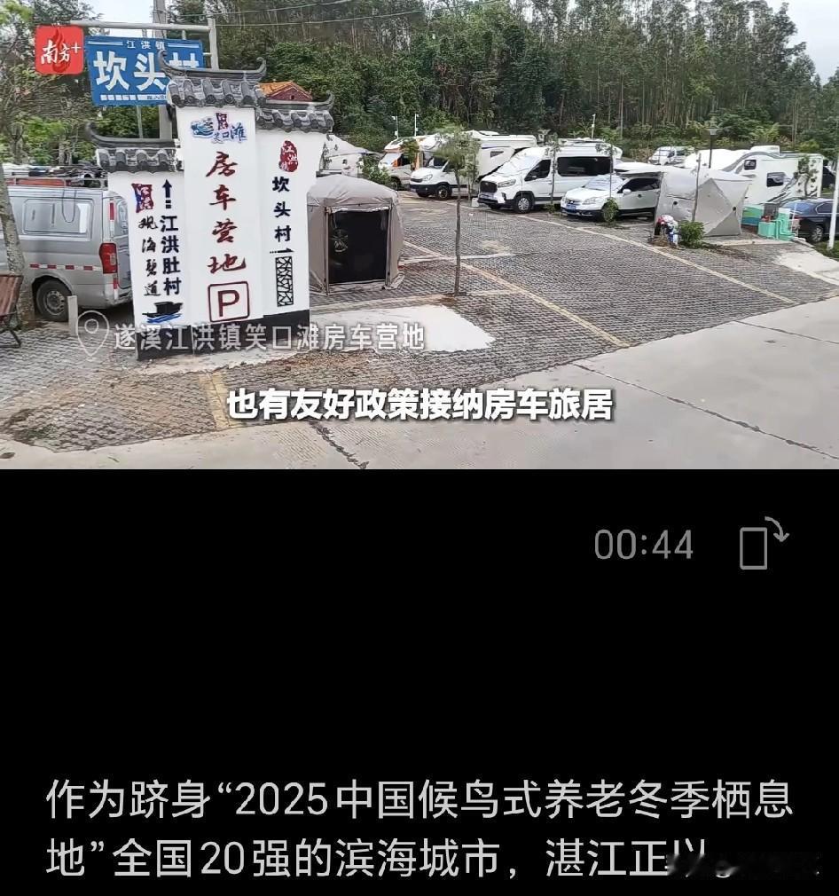 由于拥有良好的地理位置,湛江入选全国最佳冬休目的地榜的前二十名。现在湛江的各大公园成为北方省份居民南下度东的发展车汇集地,在赤坎区滨湖公园、湛江奥体中心、中澳友谊花园的停车场就可以看到很多挂着北方省份车牌的房车。据观察,这些车主大多数是上了年纪的人,应该是退休的人比较多。湛江的冬季大多数天气晴朗,气温不咋冷,适合户外活动,这是吸引北方人来冬休的原因吧。可能有很多北方人到海南度冬,但是需要经过琼州海峡的成本较高。加上湛江的食品、菜价也不贵,公园里的公厕可以提供自来水,方便他们做饭、洗澡,所以他们在湛江主要在房车上住宿。如果这些人在湛江市的宾馆饭店住宿消费,那么对湛江的经济贡献就大了。作为湛江市民,我们欢迎北方朋友前来湛江旅游度冬,品味湛江的美食佳肴,体验湛江的风土人情。