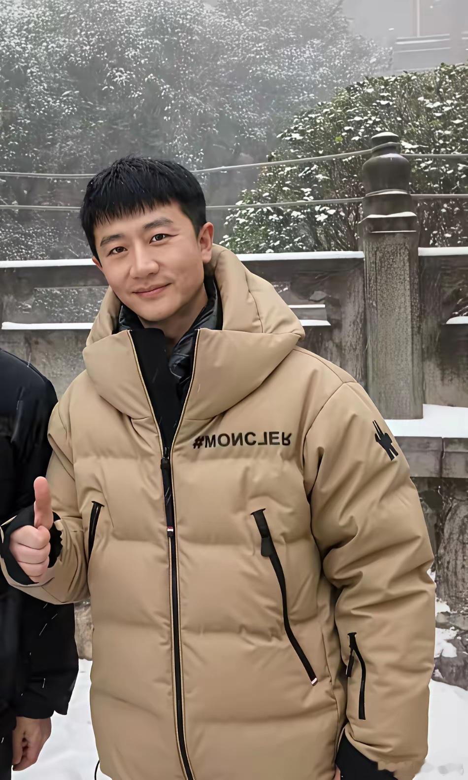 40岁黄轩在九华山被偶遇,他身穿一万多的黄色羽绒服,清爽俊郎有少年感。