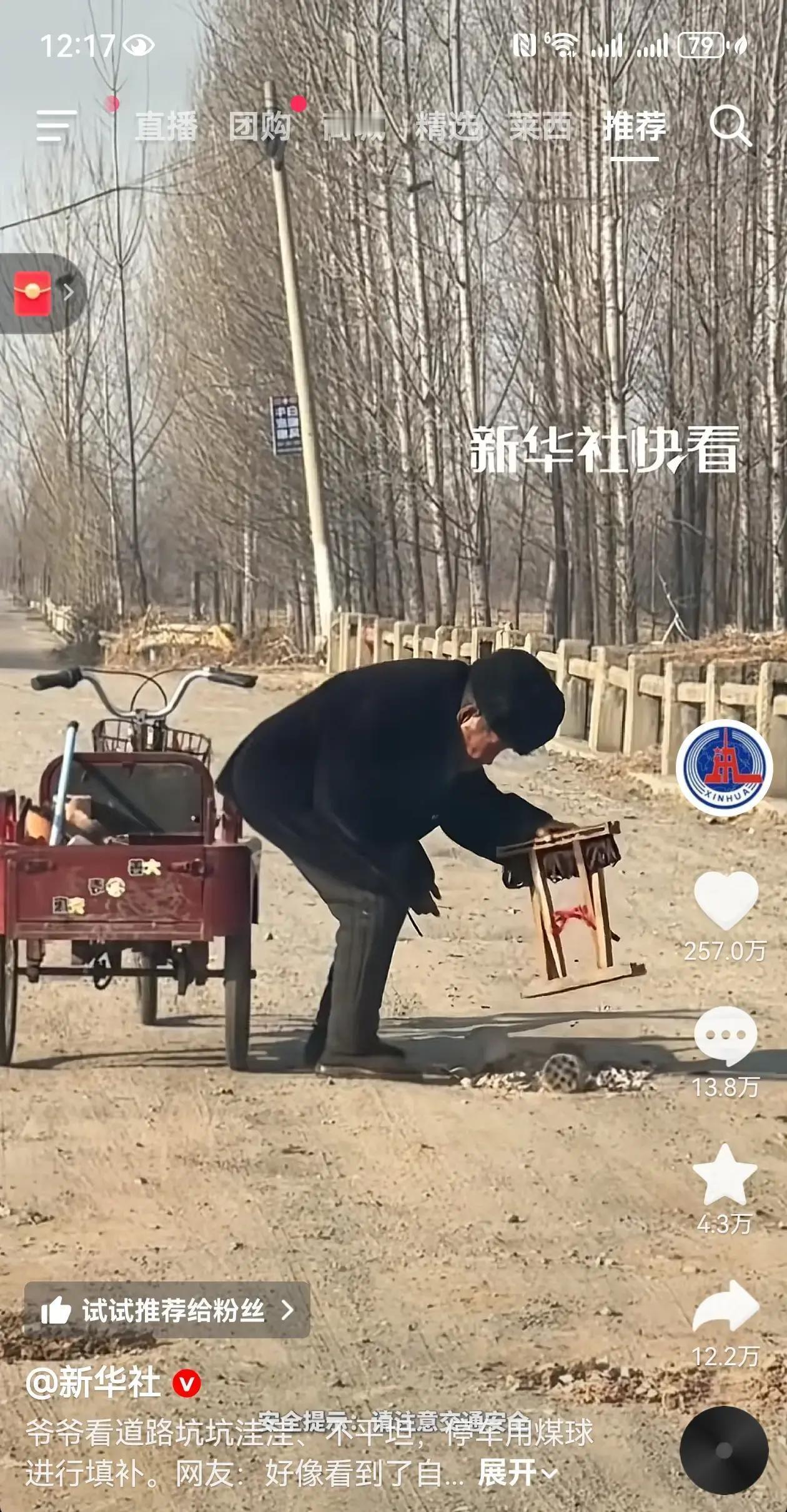 山东临沂最近出了件暖心事,1月14日,一位92岁的老爷爷骑着三轮车,专门去村里那座旧桥上填坑。他从车里掏出蜂窝煤渣,一块块扔到路面坑洼里,然后弯下腰,用脚踩、拿小马扎压实,把那些容易让人摔跤的窟窿给补上。老人家年纪这么大,还担心别人走着不安全,自己动手干这活,看得人心里热乎乎的。 这桥是村里人天天要过的路,坑坑洼洼好些年了,车过容易颠,步行更得小心。老爷爷这举动不是一时兴起,而是骨子里那种“路坏了我得管”的朴实劲头。视频一传开,好多人说这画面像极了自己家里的长辈,总想着为周边人多做点啥,哪怕只是临时补个窟窿,也要让大家走得稳当些。 这事戳中大家心窝子,是因为它提醒我们,城市化飞快推进,可有些乡间小路、小桥的维护,总有跟不上的时候。官方看到后反应很快,第二天村民就说桥面开始整修了,当地街道办也向上申请永久修缮。老人这煤渣补丁虽说粗糙不持久,却像一根针,扎醒了更多人去关注身边这些“小事”。 在我这种自发行动特别宝贵,它不是取代正规维护,而是给公共服务加了份人情味。制度该硬的时候得硬起来,但老百姓这份主动和责任心,才是社区真正有温度的底气。希望以后这样的“爷爷补路”越来越少,因为路平了,大家的心也更踏实了