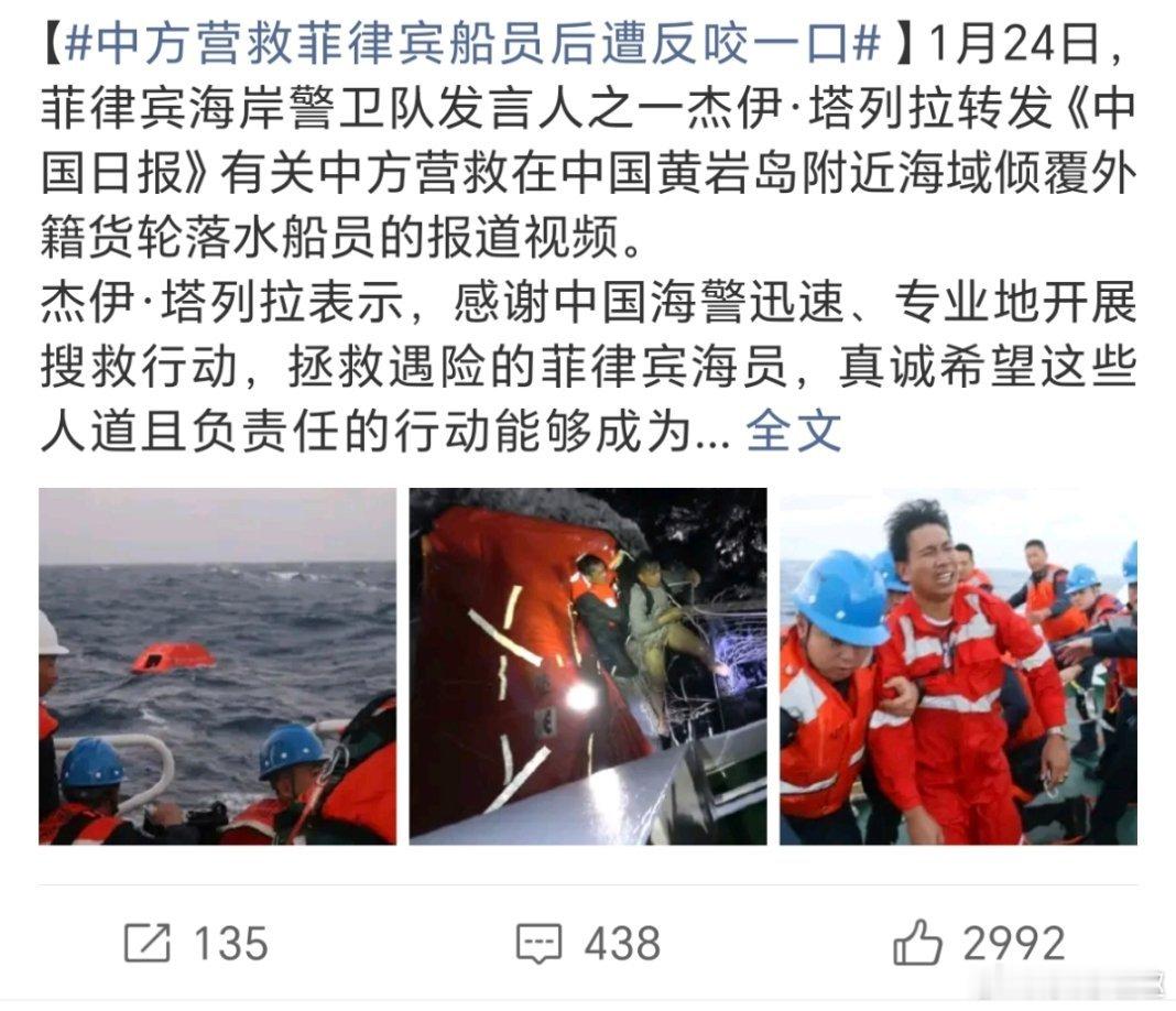 中方营救菲律宾船员后遭反咬一口人善被猴欺