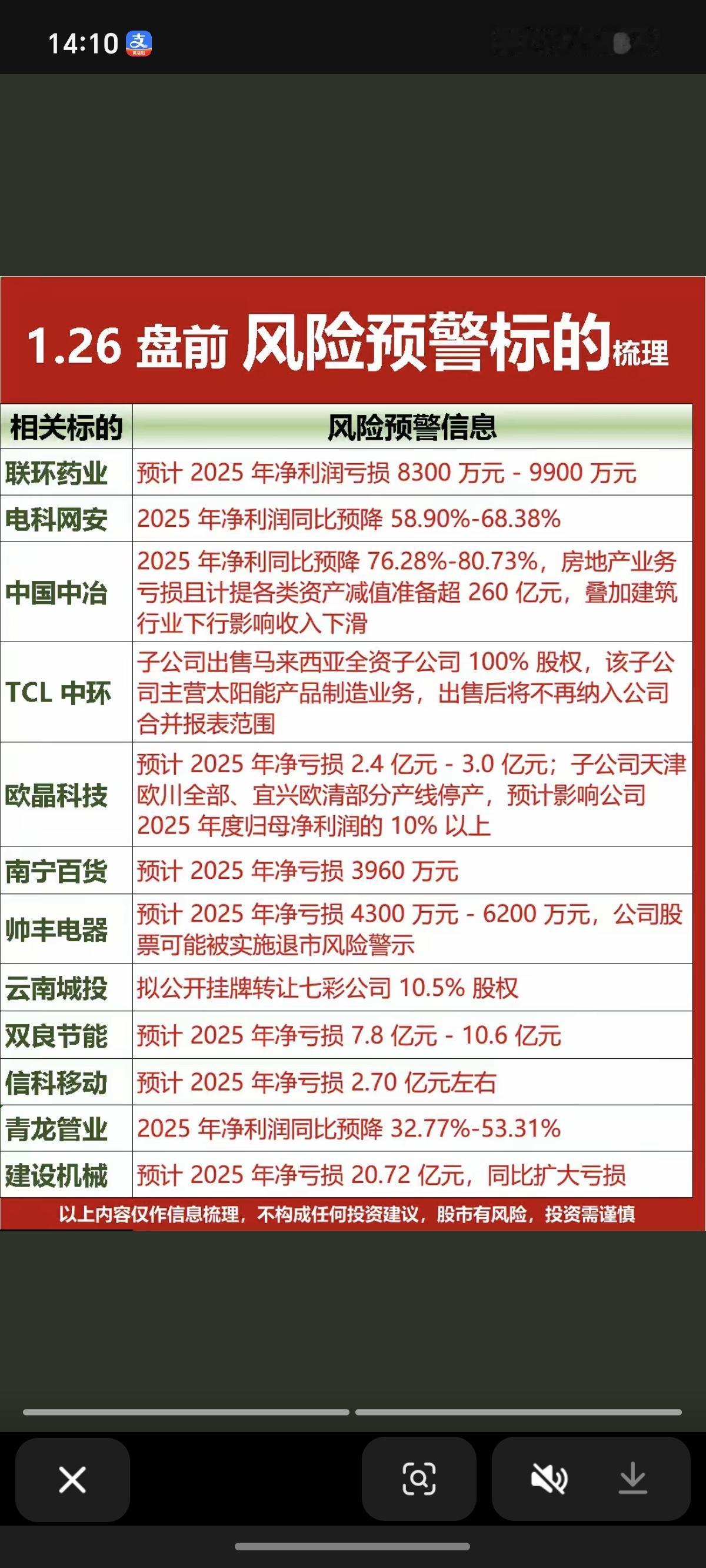 1.26周一盘前 26家公司利空消息汇总! 短期避雷股一览!