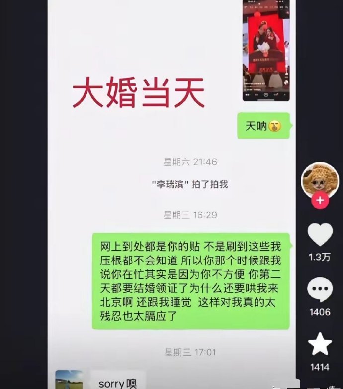 陈雪凝用亲身经历提醒大家,真的不要闪婚! 1月24日,陈雪凝刚办完婚礼才8天,丈夫李瑞滨就被曝出轨了,先是一个素人女生说李瑞滨脚踏两只船,和陈雪凝婚前就和她在一起了。 而陈雪凝和李瑞滨目前都没出来回应。 但不管这件事是真是假,李瑞滨身上的争议都不小,之前被网友怀疑是男名媛,身份造假,现在又被曝出轨,还是在刚和陈雪凝结婚几天的时间里,这就很难评了。 不管是荷尔蒙上头,还是为了结婚而结婚,都不要选择闪婚,多一点时间谈恋爱相处,会避免许多的麻烦。