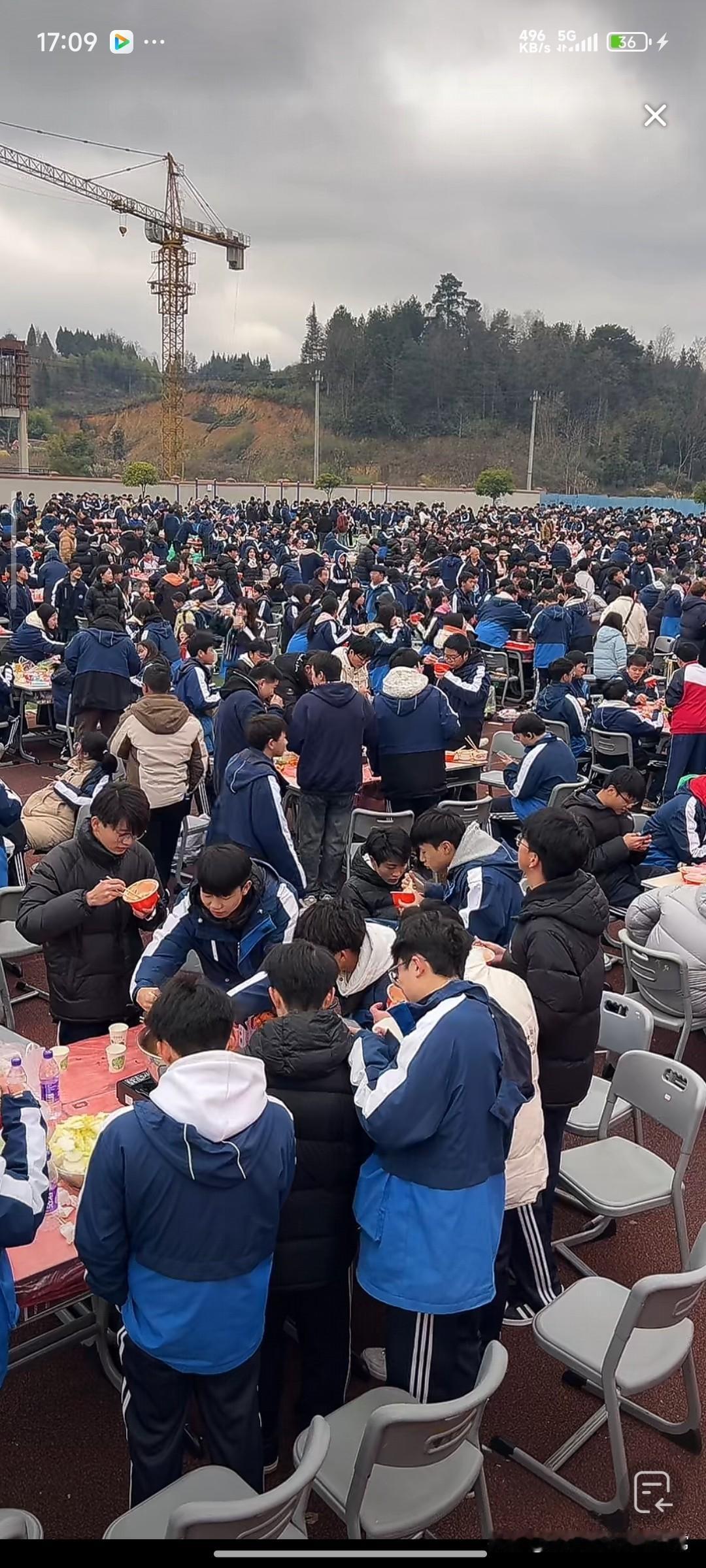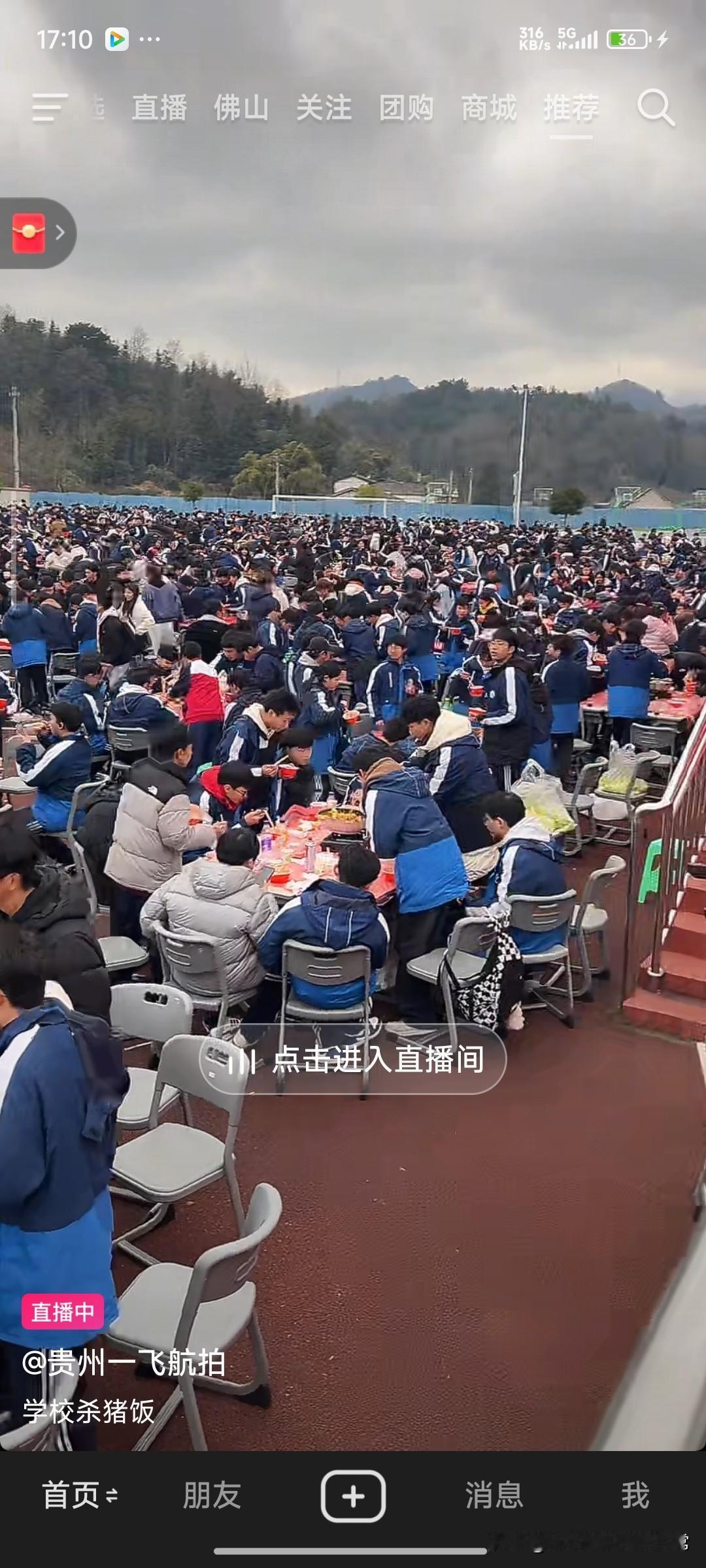 贵州这所学校几千人露天吃杀猪饭 贵州毕节这所学校的操作,直接把我看懵了! 几千名学生挤在操场上,围着圆桌吃杀猪饭的场面,比过年还热闹。蓝白相间的校服连成一片,空气中飘着肉香和笑声,有人端着碗站着吃,有人凑在一起抢菜,还有老师举着手机拍视频,这哪是校园,明明就是大型农家乐现场! 我刷到直播的时候,评论区已经炸了。有人酸到变形:“我的高中只有食堂的速冻饺子,别人的高中直接杀猪开席!”还有人开玩笑:“明年我也去按猪,能不能蹭一碗?” 其实这就是贵州山里的传统——杀年猪、吃庖汤,学校把乡土味搬进了校园,让学生们在书本外,尝到了最鲜活的年味。比起冰冷的成绩单,这种热气腾腾的集体记忆,才是青春里最硬核的浪漫吧!