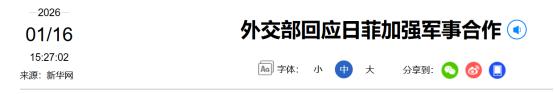 不同寻常!2026年1月16日,外交部直接“掀桌子”,发言人:血战必须血偿!   近期菲律宾与日本签署协议,加强军事后勤互助,却引起了我国高度关注。只因菲律宾同日本此次签署协议,针对性非常明显。我国同菲律宾存在着南海争端,而与日本更是因日本首相发表涉台言论,而产生争端。   所以在这个关键时间,日本与菲律宾签署加强军事后勤互助的协议,明显就是针对我国。所以在相关消息流露出来之后,2026年1月16日时。外交部例行记者会议中,就有记者对此事进行提问。   发言人明确表示,中方一贯认为,国家间开展合作不应针对第三方或损害第三方利益,不应破坏地区和平与稳定。   在做出这番表述的时候,发言人郭嘉坤情绪还算可控。但是随着话音一转,他却情绪外泄明显,现场更是因此沉默。   在回应这一问题的时候,他谈及了日本军国主义在二战时期,侵略菲律宾的事情。指出日本军国主义以武力和胁迫手段,迫害菲律宾人民,残忍杀害中国外交领事官员。强调这一历史必须铭记,这些血债必须血偿,这类罪行必须清算。   他用了三个“必须”,来表达中国对此事的愤怒。在外交方面,中国一直非常理智,更是以克制著称于国际。可是在此次的记者会议中,却直接掀桌子“怒斥”。足以证明菲律宾同日本的这一行为,强烈引起了中国的不满。   二战时期,日本对东南亚国家造成了巨大的伤害。虽然二战已过去多年的时间,但东南亚国家并不应该忘记历史。   对此,您怎么看?欢迎评论区留言你的看法。   (信息来源:外交部回应日菲加强军事合作-新华网)
