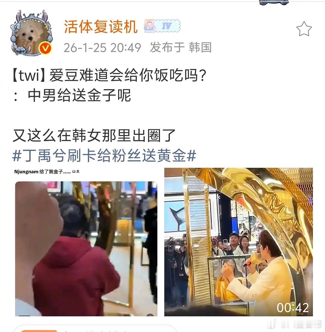 韩推热议:追中男给送金子呢丁禹兮的逆应援在韩推上被热议