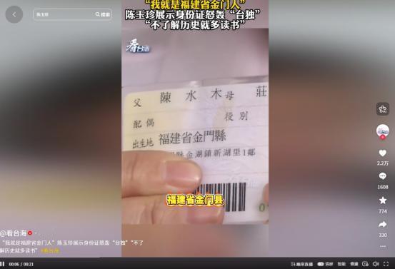 金门县长公开发声!2026年1月24日,金门县立委员陈玉珍,再度发声!金门不属于台湾,而属福建泉州! 台湾问题是我国高度关注的内政问题,针对台湾问题,我国多次表态台湾是属于中国的领土,台湾同胞是中华儿女。 但是在这个背景下,仍旧存在着很多台独分子。他们受错误思想的影响,坚定的不肯承认台湾属于中国,严重的破坏着祖国的统一。 有台独分子自然也有统一派,有很多人不顾自身的安危,公开现身表态台湾属于中国。就在2026年1月16日的时候,金门县立委陈玉珍就公开表示,金门不属于台湾,而属于福建泉州,她更不是台湾人。 在做出这一表态的时候,陈玉珍拿出了自己的身份证。以此证明自己身份证上登记的出生地,是福建省金门县。 这番言论在台岛内引起极大争议,而在发表这番言论的时候,陈玉珍还强调不了解历史就多读书。 这番言论引起轩然大波之后,2026年1月24日的时候,陈玉珍再度发声。她本人直接反问,福建省金门县何错之有?并直接戳破了台独分子的虚假面孔。 台湾在中国以及国际中只会有一个称谓,那就是“中国台湾省”。搜索台湾内的一些地方,就会发现在搜索词条里,显示的是“台湾省下辖县”。但是如果搜索金门县,就会发现出现的词条是,中华人民共和国福建省泉州市下辖县。 对此,您怎么看?欢迎评论区留言您的看法,我们一起讨论一下。 (信息来源:"我就是福建省金门人"陈玉珍展示身份证怒轰"台独""不了解历史就多读书" -看台海) (信息来源:陈玉珍:福建省金门县、何错之有?我戳破了他们"台独"的心和面具-看台海)