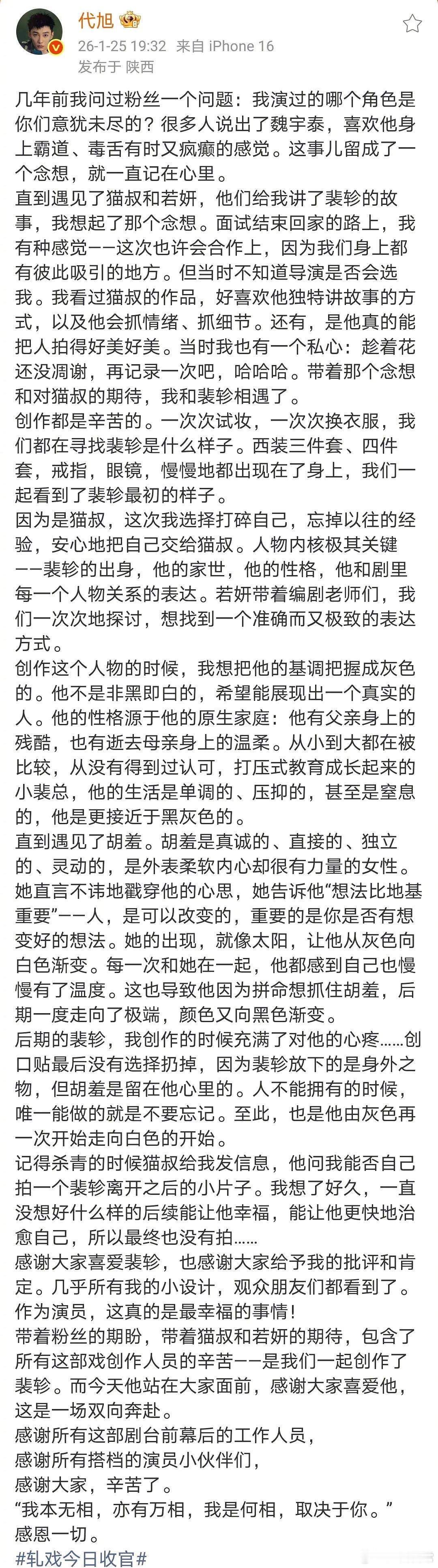 《轧戏》收官小作文,陈星旭AIGC总体疑似度67.36%,代旭AIGC总体疑似度0%陈星旭轧戏收官文代旭千字长文告别裴轸