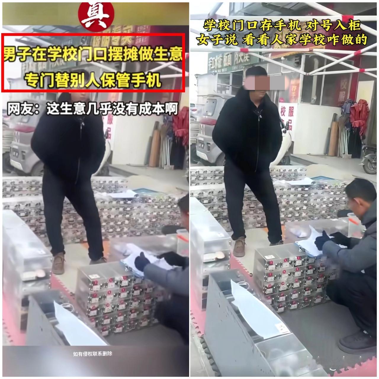 这是真有头脑! 河北衡水一男子瞅准学校不让带手机的规定,在校门口摆起 手机寄存摊,储物柜天天爆满,生意火到不行! 学校禁手机,可学生放学要联系家长、扫码乘车,手机带进去违规,放外面又怕丢,正好戳中痛点。 男子靠一排排储物柜,按号存取,既帮学生解决难题,又把需求变成了稳赚的小生意。 有人说零成本,其实不然,学校附近租金、人工看管、安全保障都是开销,但胜在投入小、回本快,精准踩中了刚需。 商机从来都藏在不起眼的细节里,能发现并抓住,就是本事。 你觉得这门生意能长久做下去吗?