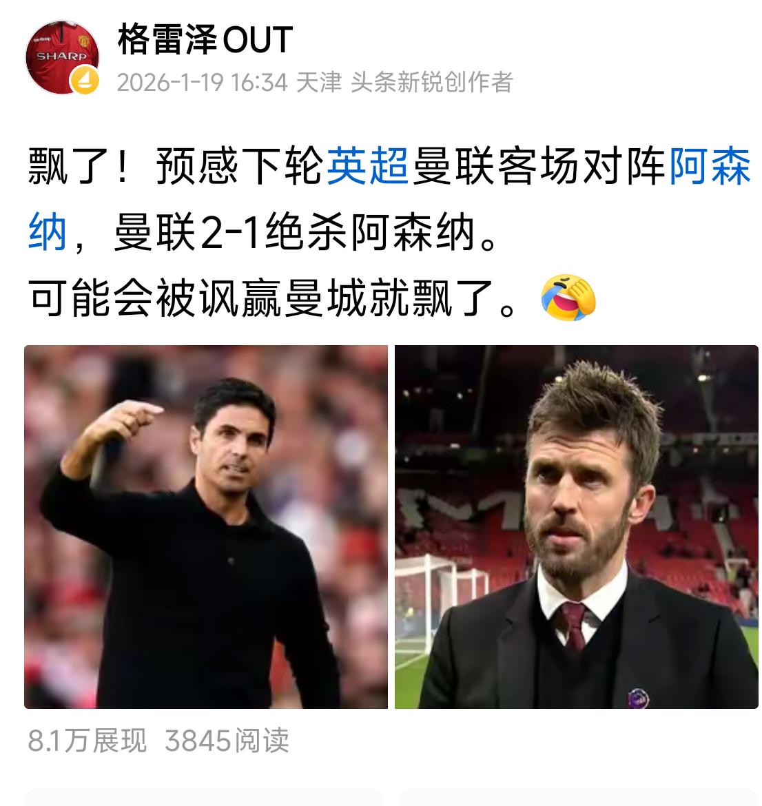 一周前被讽刺!一周后被我装到了!其实现在很多人不懂球,惯性思维阿森纳稳赢曼联。 阿尔特塔到底有多少能水难道大家不知道吗?卡里克或许真的是曼联那个正确的人,我相信本场比赛后,拉特克利夫开始考虑是否转正卡里克。