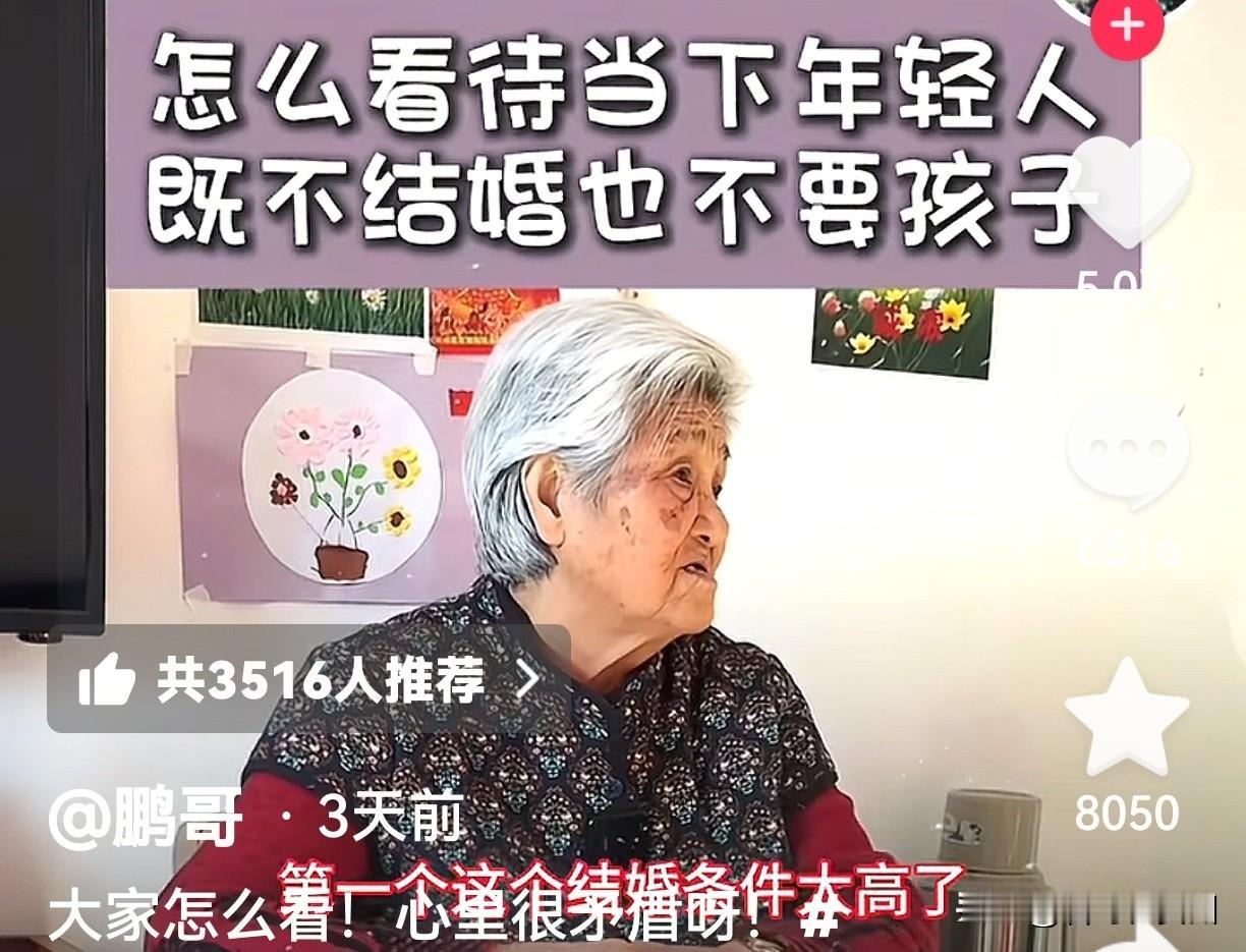 年轻人不婚不育,这位老人的三句话却让所有人沉默… 今天听到一位老人的真心话,关于年轻人不婚不育,他没有批评,只有心疼。他说:“不是孩子不想结婚生娃,是这世道,结婚像投资,养娃像填坑。” 短短几句,戳中了多少人的痛? 为啥现在年轻人连婚都不敢结了? 因为结婚成本,已经高到让人爱不起。 以前讲感情,现在讲条件。房子、车子、彩礼,哪一样不是钱堆出来的?爱情再美好,也抵不过一句“你买得起房吗?” 很多人不是不愿意,是真的“结不起”——感情还没崩,钱包先崩了。 结了婚,就能轻松了吗? 更难的是养孩子——简直成了“奢侈消费”。 过去一家五六个孩子,粗养也能长大。现在呢?从尿布奶粉到学费补习,样样烧钱。请不起保姆,就得夫妻一方辞职带娃,事业直接搁浅。教育更是个无底洞,幼儿园到大学,补习班、兴趣课,没几十万下不来。 更累的是心:带孩子出门,一秒钟都不敢移开眼。老人那句“交个菜钱孩子可能就没影了”,不是玩笑,是无数家长 daily 的焦虑。 所以年轻人选择不婚不育,真是自私吗? 这位老人摇摇头:“他们是清醒。” 在高压社会里,选择先顾好自己,不是逃避,而是理性自保。结婚生子不再是人生必选项,而是权衡后的选择题。如果连自己都活不好,怎么承担一个家? 但话又说回来,这样真的好吗? 老人最后轻声说:“我理解,可我心里也发空。怕的不是没人传宗接代,是以后家家户户关门安静,没了孩子的吵闹声,社会也就没了热气。” 原来,不婚不育的背后,不仅是年轻人的无奈,也是一个时代温情的渐退。 你呢?是被现实压得不敢向前,还是坚定选择自己的路? 评论区聊聊:你不婚不育的理由,到底是什么?