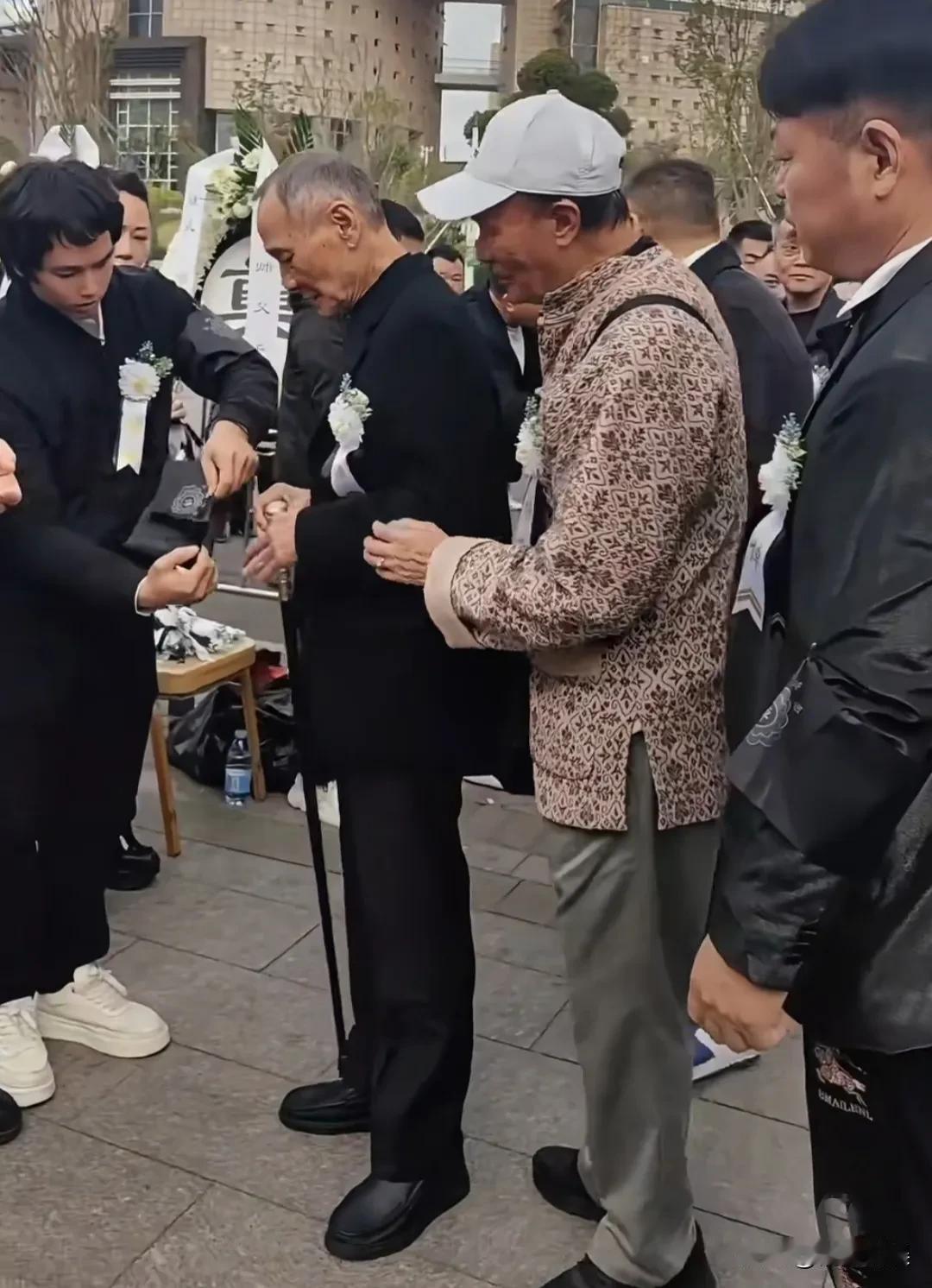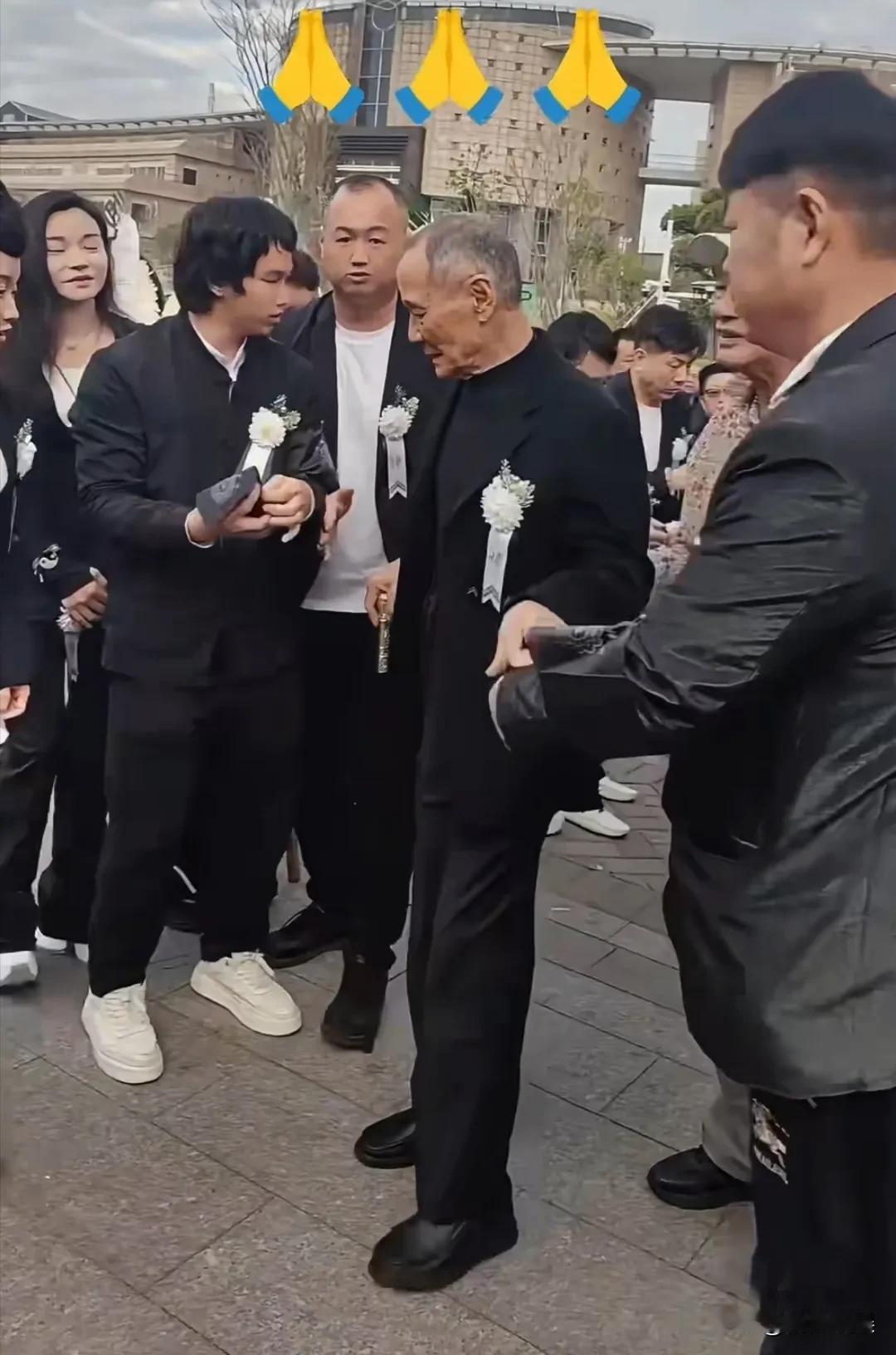 81岁的陈惠敏,现身深圳送别好兄弟梁小龙先生。 陈惠敏穿着一身黑色,胸前戴着白花,拄着拐杖,身材清瘦,满脸皱纹,腿脚不是很好,由旁人搀扶到场,一代功夫明星是真的老了! 俩人因为电影《破戒》结缘,志同道合,兴趣相投,后来在2015年正式结拜为兄弟。 已经年暮的哥哥,给三弟送别,想必心里特别难受吧。梁小龙的离去,世间再无陈真,愿他一路走好![祈祷][祈祷][祈祷]