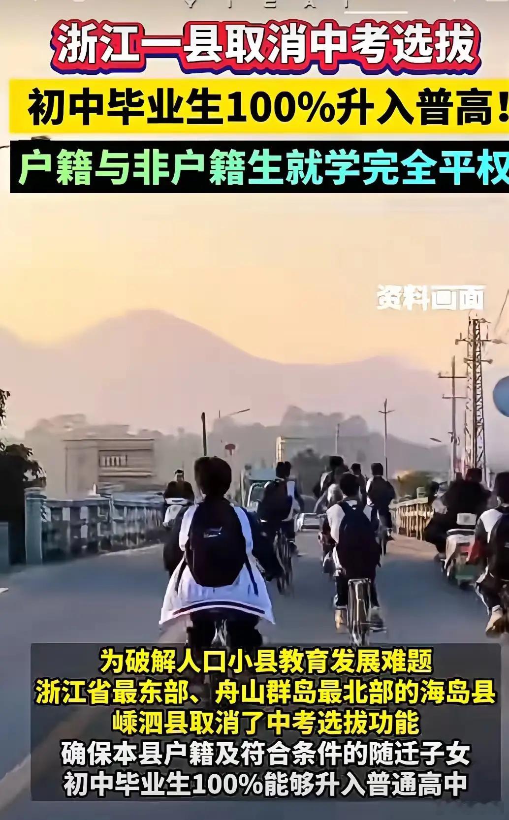 嵊泗县取消中考选拔功能为什么要取消?因为初中全部考生不到三百名了,再不取消,老师的岗位都快没了!热点观点
