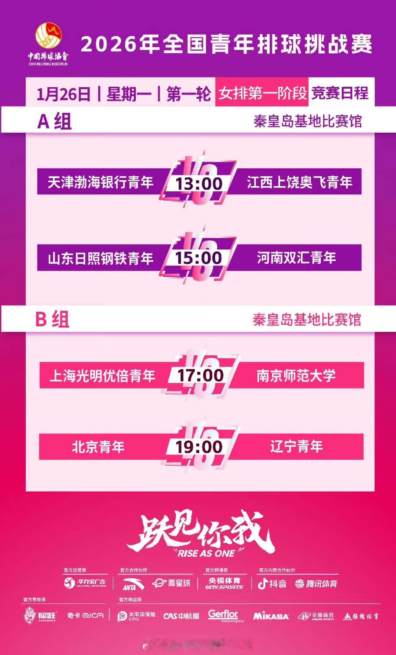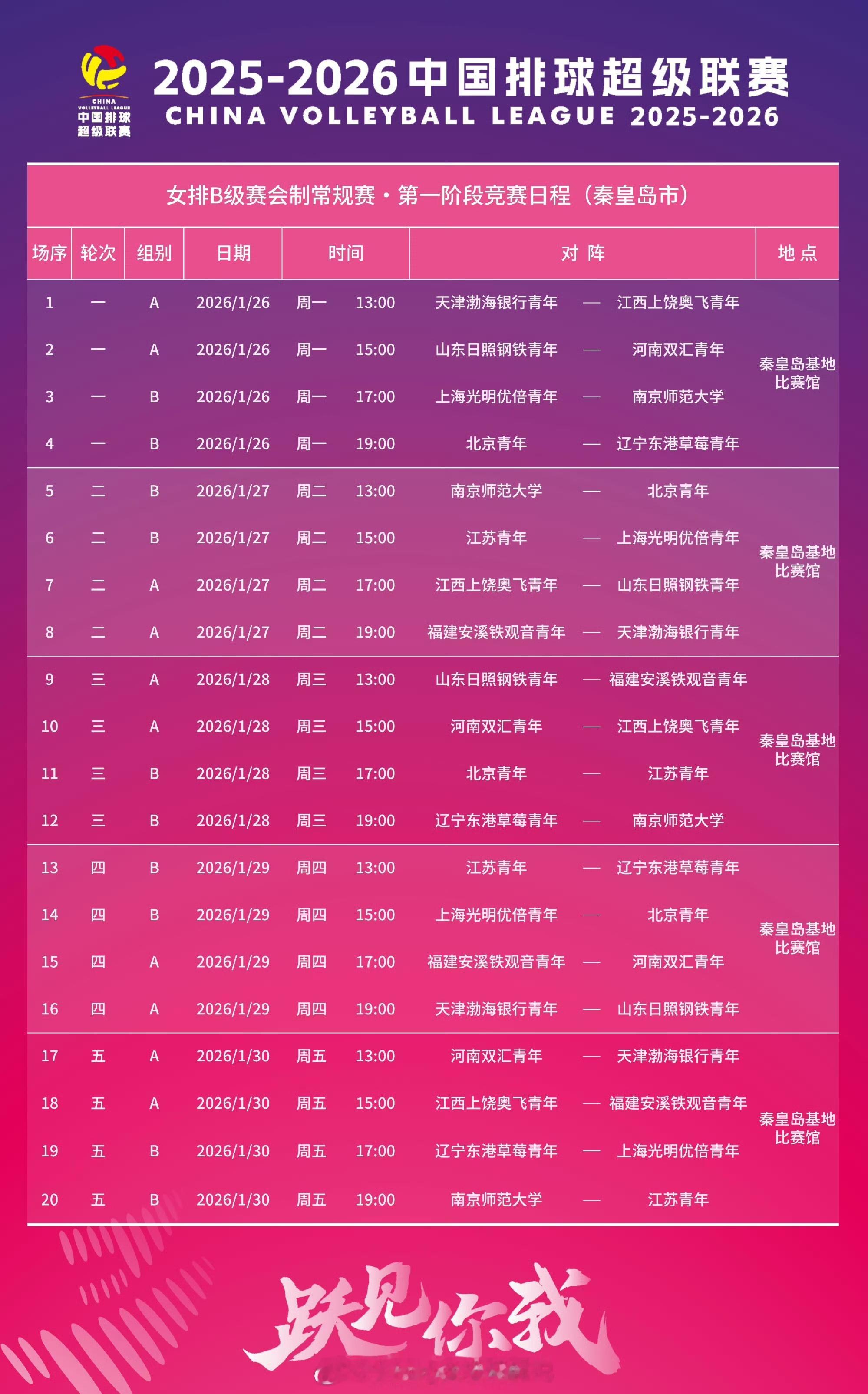 ❤️1月26日周一直播预告:▲【排超青年组第一阶段在*企鹅体育app*直播,网页链接】⏰ 13:00天津v江西15:00山东v河南青年女⏰ 17:00上海v南京19:00北京v辽宁青年女 (加微信kingpaiqiu进群 ,微博:小king金排球解说 看录像和预告,意甲女排在抖音:小king金 直播,企鹅体育app直播其他比赛)【本周预告图+青年组常规赛第一阶段赛程】中国女排中国女排超级联赛