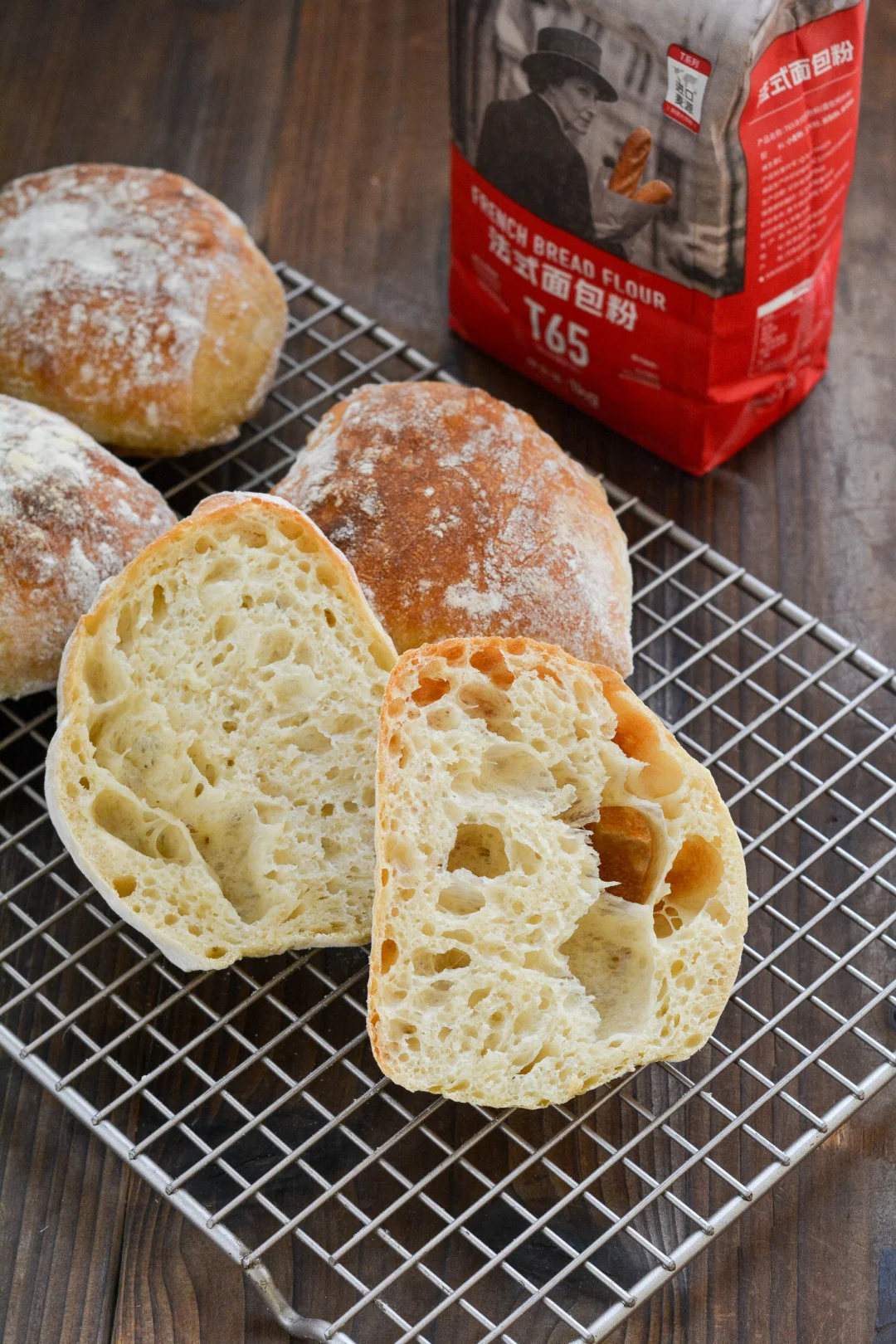 用新良T65制作恰巴塔,太省心了,面粉筋性高,吸水性好,涨发效果极佳,外脆内软,特别有嚼劲。空口吃或者做成恰巴塔汉堡,超赞!
