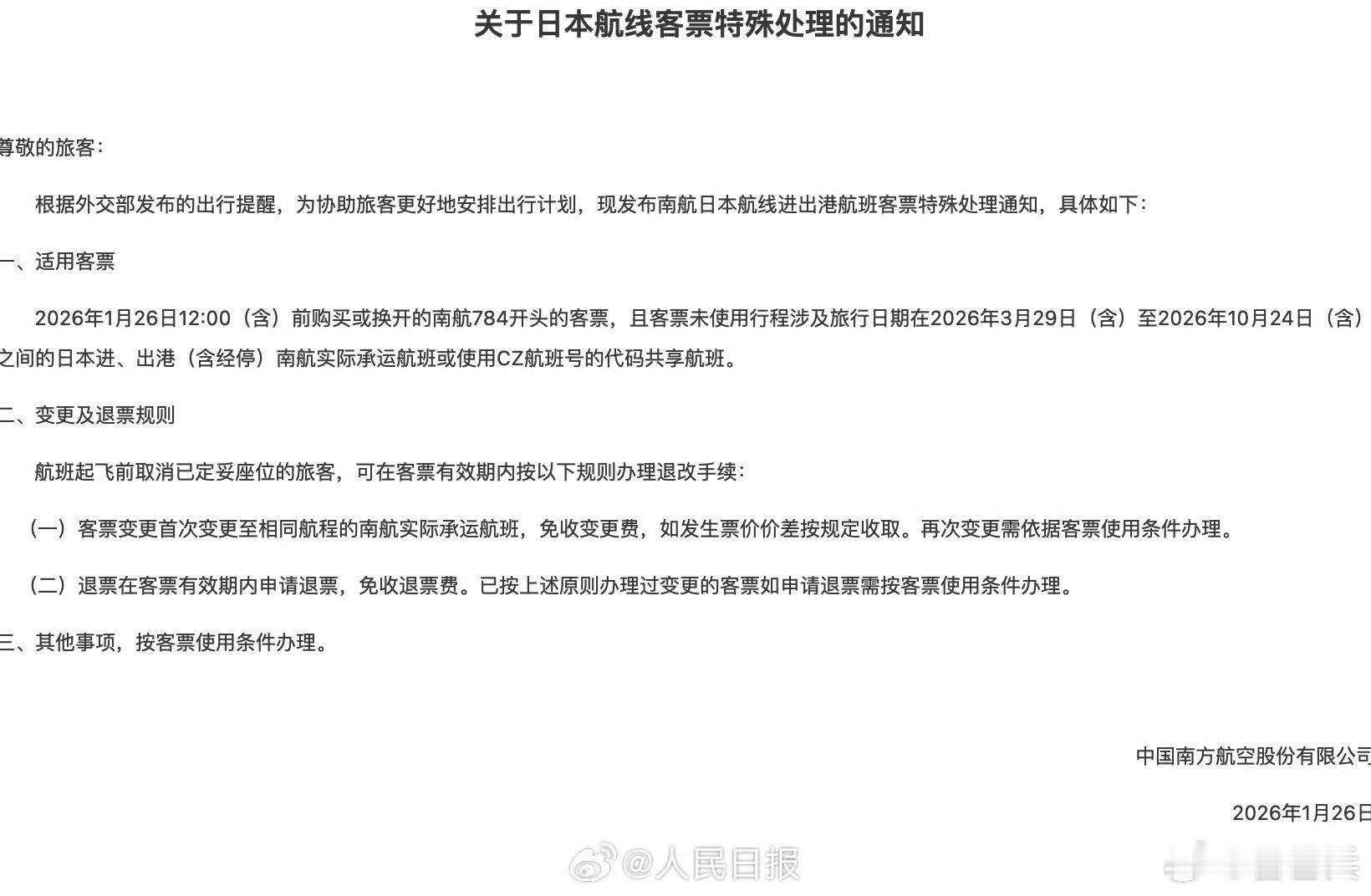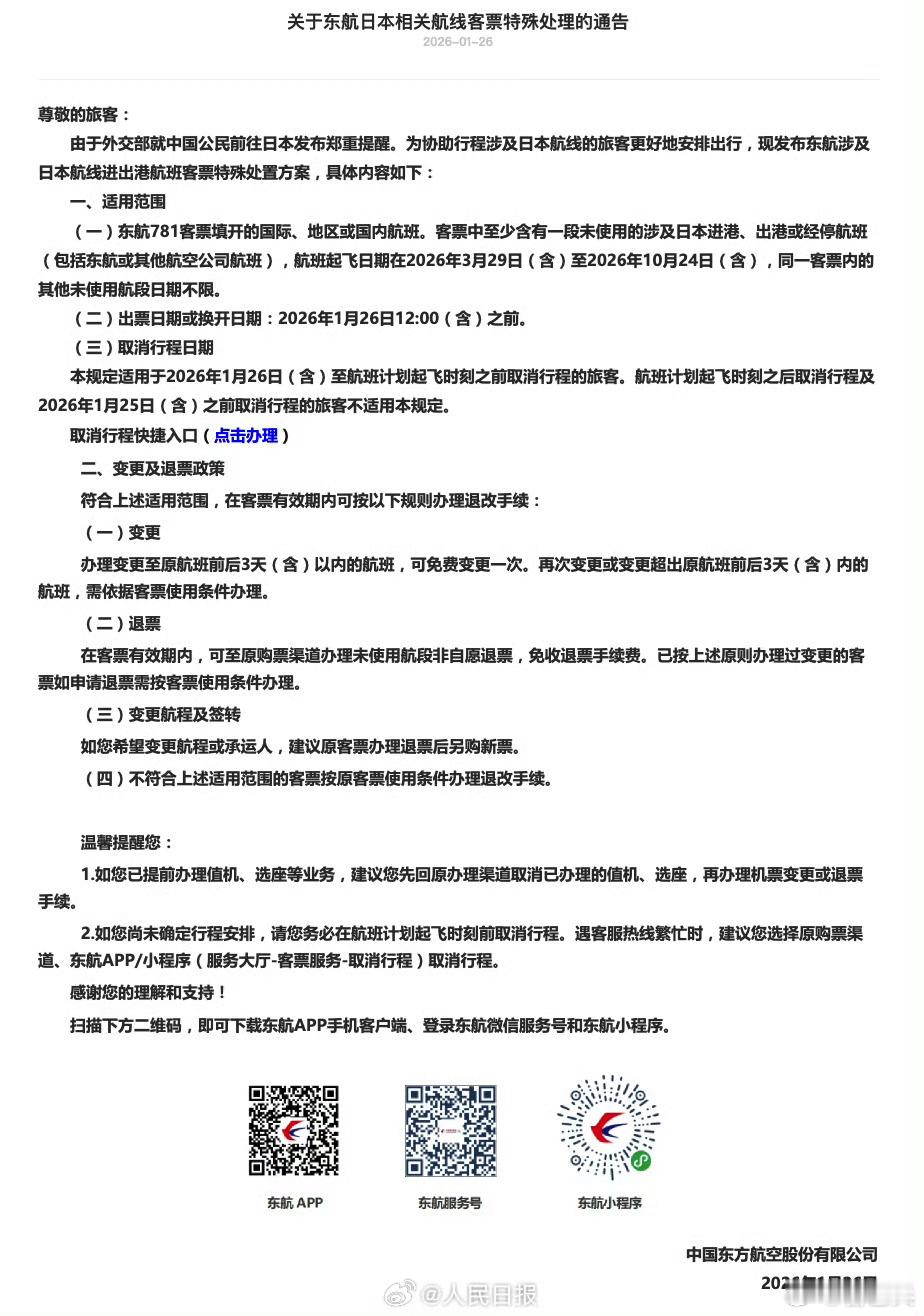 【外交部提醒中国公民春节避免前往日本】外交部发布涉日旅游提醒中国公民在日本有严重安全威胁近段时间以来,日本社会治安不靖,针对中国公民违法犯罪案件多发。部分地区连续发生地震,造成人员受伤,日本政府已就后续地震发出警告。中国公民在日本面临严重安全威胁。 农历春节临近,外交部和中国驻日本使领馆提醒中国公民近期避免前往日本,提醒已在日中国公民密切关注当地治安形势,以及地震和次生灾害预警信息,提高安全防范意识,加强自我保护。如遇紧急情况,请及时报警并联系驻日使领馆寻求协助。 .涉日航线免费退改延长至10月24日三大航:涉日本航线客票免费退改政策延长至10月24日。据悉,航空公司已多次发布涉日本航线客票特殊处置方案,此前的免费退改政策执行至3月28日。中国公民春节期间避免前往日本