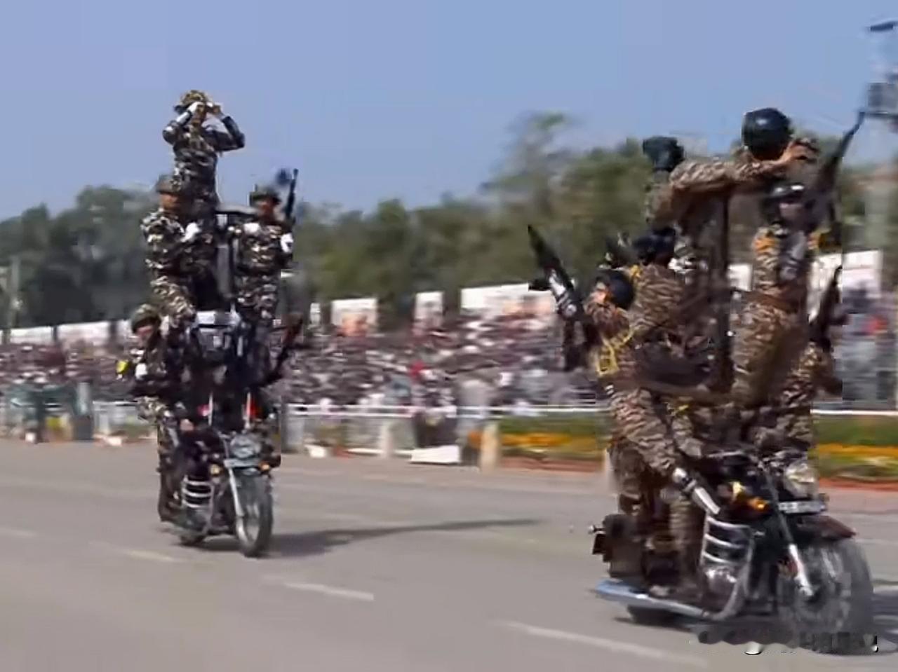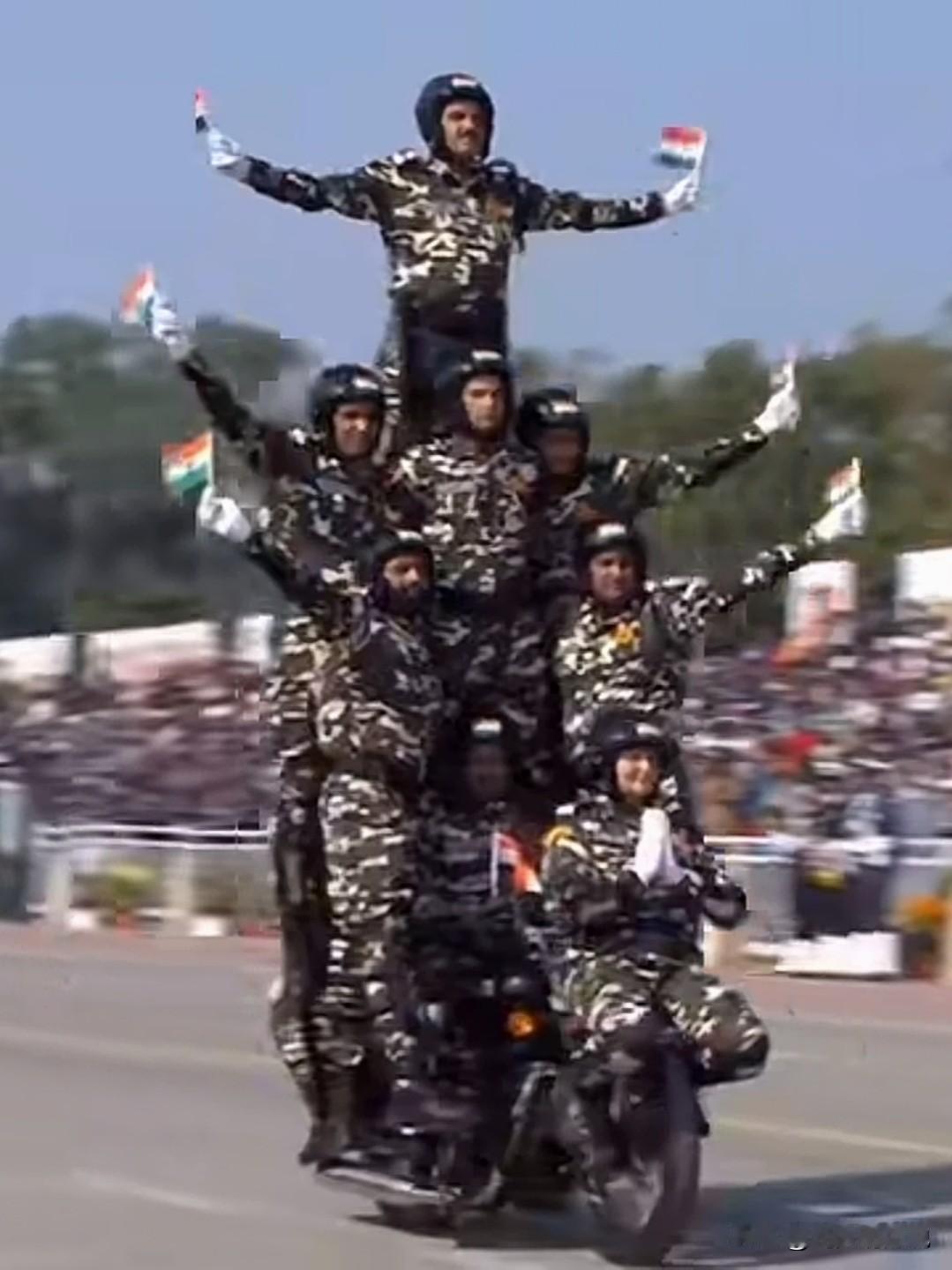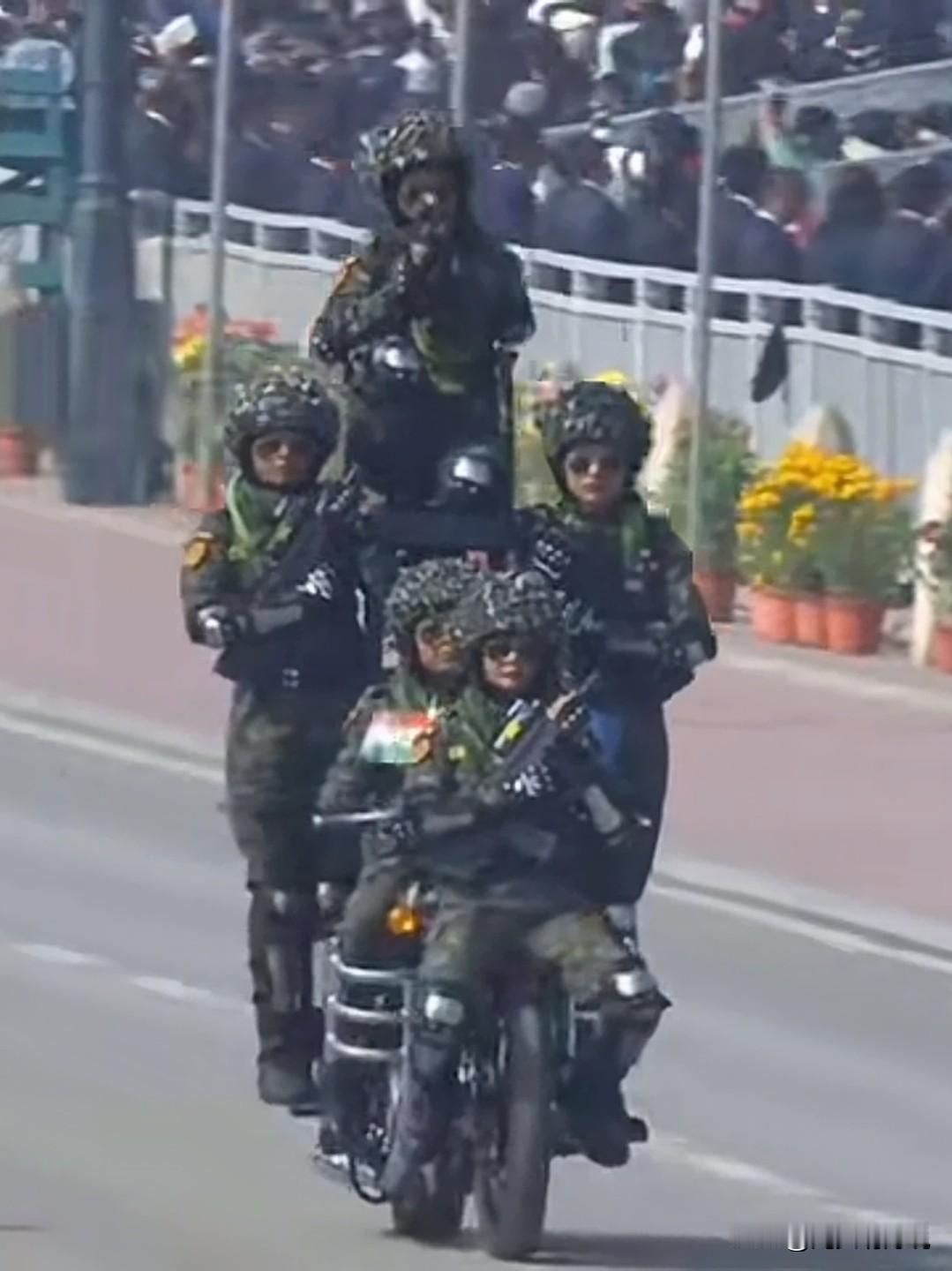印度当地时间1月26日,印度新德里举行的共和国日阅兵,看完后真让人大开眼界。 这次印度阅兵才让中国人真正知道什么才是全兵种摩托化,排头兵举着军刀踩着摩托向前,摩托化陆军指挥部,摩托化特种部队,摩托化通信部队,摩托化武装警察,摩托化飞行员,摩托化全球快速部署部队,摩托化空降部队。 感觉要不是现在印度科技发展有限,印度人才不得不用这么多摩托车,再过个几十年,大家觉得印度人会不会把所有的阅兵部队都集中到一辆摩托车上?