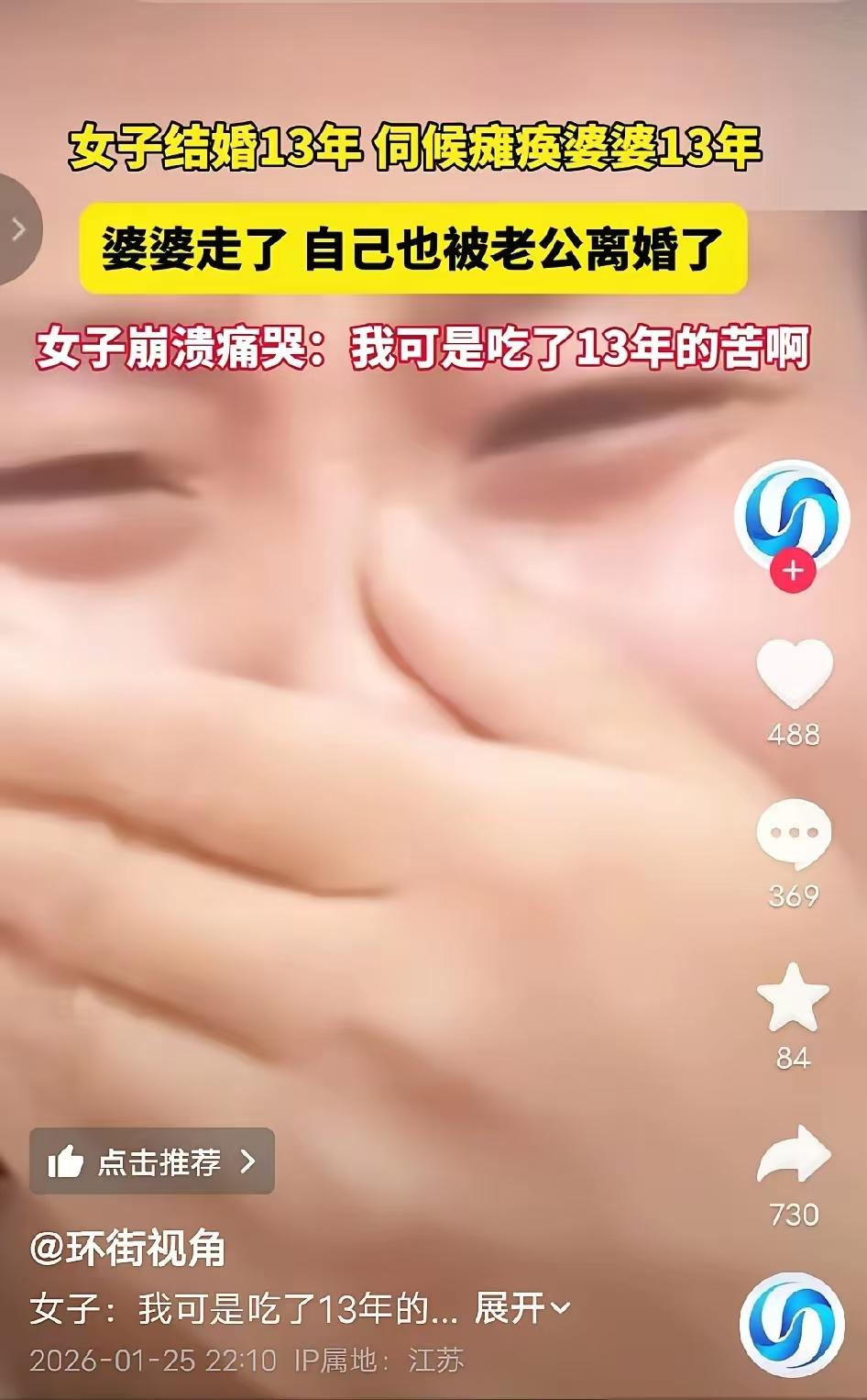 一女子伺候瘫痪婆婆13年,喂饭擦身、端屎端尿,可刚给婆婆送终,丈夫就立刻提出了离