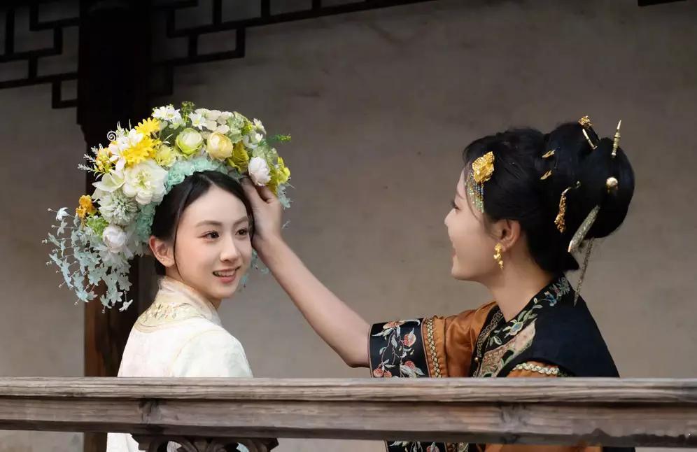 分享娱乐叶一茜带女儿体验簪花 森碟气质出众甜美秀气
