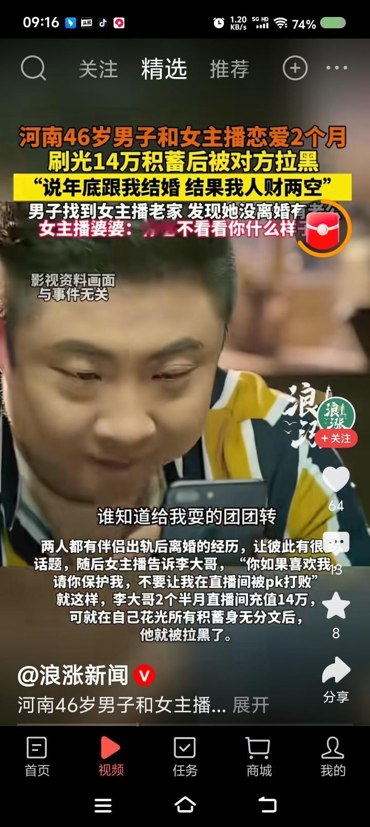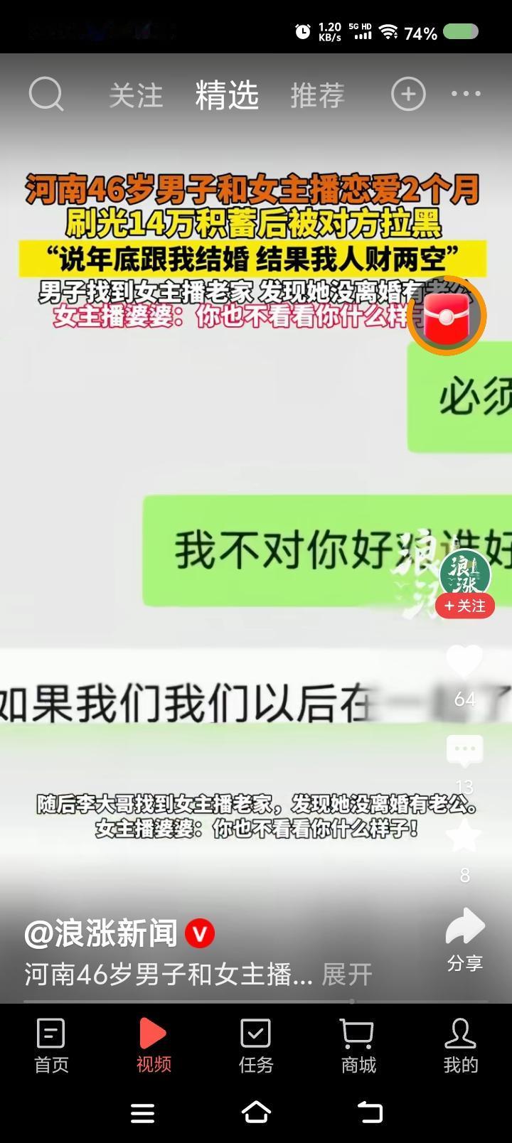 哀其不幸,怒其不争!—— 据报道,一男子爱上一网络女主播,刷光14万积蓄被拉黑,找上门发现对方已婚。对方婆婆说:“不看看你长啥样。” 点评: 真想说:男人啊,你的苦难配得上你的认知。 无语了! 气笑了! 说了多少遍,不要网恋不要打赏甚至不要进直播间。想直播了找撒贝宁,他和你今日说法。 另外,这个老人说话太气人,意思是胡歌来了这事还有商量?陈佩斯来了就认倒霉?那泰森来了是不是检测一下你家房子? 最后说一句:法办!