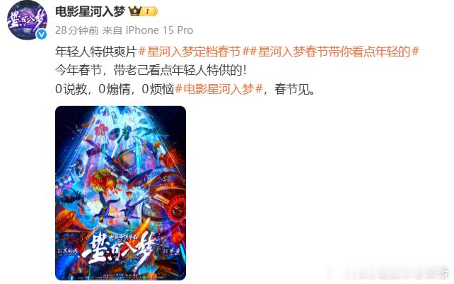 星河入梦0说教0煽情0烦恼王鹤棣宋茜第一部春节档电影星河入梦定档春节 官宣!王鹤棣宋茜第一部春节档电影《星河入梦》定档,0 说教 0 煽情 0 烦恼,解锁年轻人的春节档轻松观影模式!