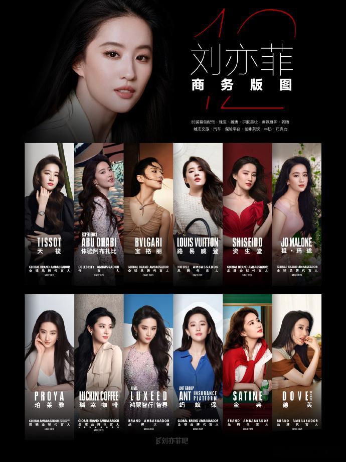 刘亦菲这个阵仗刘亦菲顶级商业价值刘亦菲 祖玛珑 内娱商业天花板刘亦菲!十二款代言款款都是行业 Top,这阵仗谁看了不喊绝