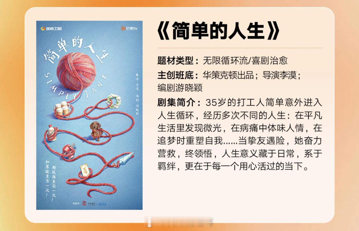 🥭电视剧《简单的人生》主演:倪妮、陈昊宇导演:李漠编剧:游晓颖