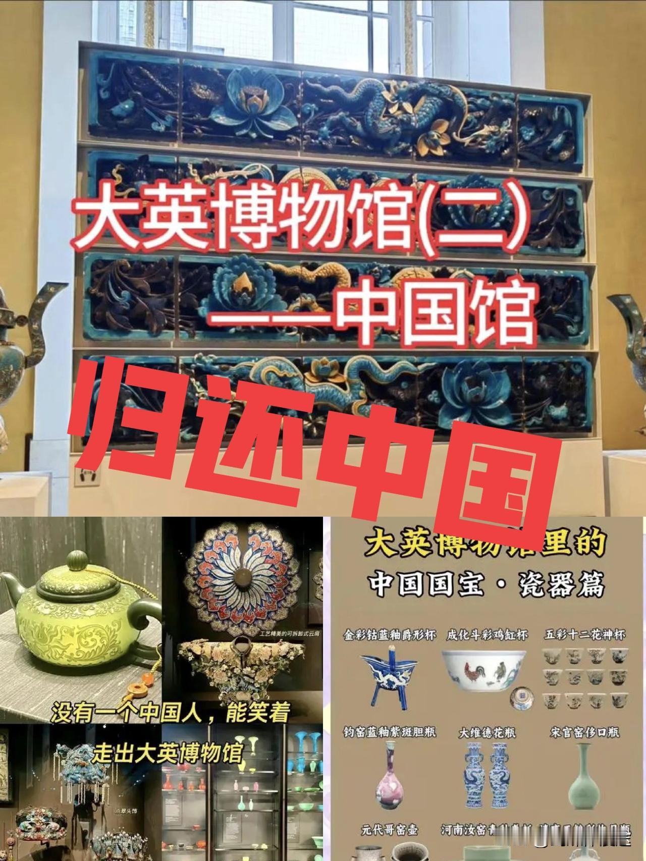 任何国家“盗抢”中国国宝都必须归还中国,日本先行:日本 6 个月之内将 18 件国宝按清单完成第一阶段的归还!“八国联军”除了日本外,还有英 法 美 意 奥 德 俄! 人民日报:被日本掠夺的唐碑重宝,理应归还中国! 唐鸿胪井碑现在被安放在日本皇宫的后院内,是日本在日俄战争中“盗抢”此物。 唐鸿胪井碑镌刻着中国古代王朝册封边疆、维护国家统一、促进民族团结的厚重历史,对中国而言,具有不可替代的重大政治意义、深远历史价值与独特文化价值。 所以日本盗抢中国的国宝之举 适用于 1970 年联合国教科文组织的规定及 1995 年被盗或非法出口的文物公约,申索没有时效性限制。所以日本必须按清单归还! 接下来 在抗战期间 日本还盗抢了中国国宝近 360 万件,遍布在日本全国各大小博物馆内,包括东京国立博物馆,京都国立博物馆、大阪市立博物馆等多家机构都藏有大量中国珍品。从石器、玉器、青铜器,到陶瓷、书画、典籍,几乎囊括了中国古代文化艺术的所有门类。 外国 全世界都知道的 英国大英博物馆内中国的国宝 将近有 23000 件 还有美国都是掠夺中国文物的“大户”:美国各大博物馆收藏的中国文物总数估计在十几万件的规模。 所以随着中国国力的加强,中国有能力有实力要求这些曾经的“八国联军”入侵中国并抢夺中国大量国宝的国家,必须将所有的宝物归还中国,这也是符合国际法的规定,中国正当依法办事。 接下来 中国不再通过 官司 拍卖 转赠 等方式收回国宝,中国直接列出清单 定时间 打包转回中国的要求。 这些中国流失正值中国国力下降 政府腐败无能的情况之下,被外国侵略者炮轰国门 入侵中国 殖民中国的时候,将一件一件的老祖宗几千年留下来的文化与文明的智慧结晶,被侵略者掳走,每一件国宝都镌刻着中华文化与文明的铬印,作何国家想赖也赖不掉的,中华文明只属于中国,任何国家手上占着中国的 国宝都是非法盗窃,必须回归!