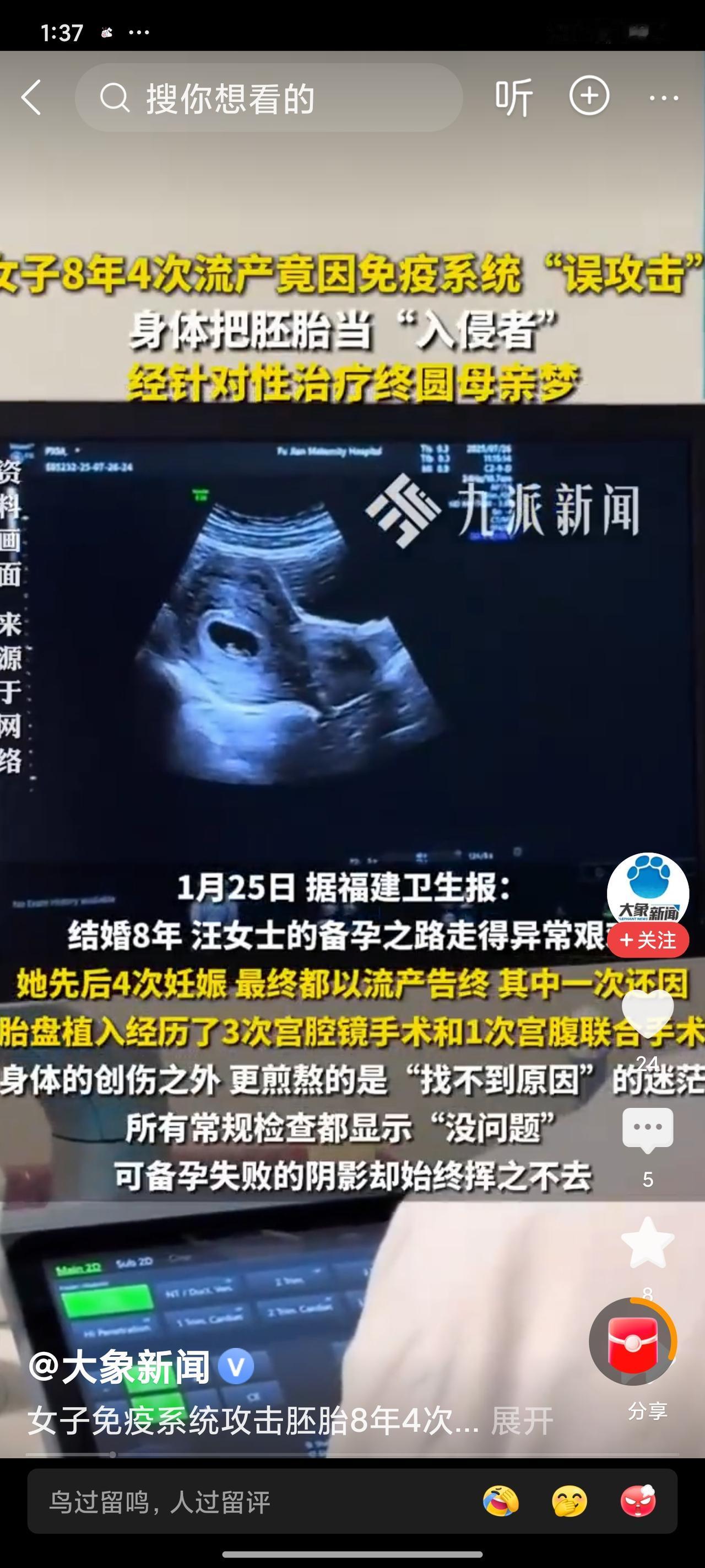 🔥8年4次流产还挨了4次手术!福建这位宝妈的备孕路,真的看得人鼻酸! 31岁的汪女士盼孩子盼了整整8年,期间4次怀孕全以流产收场,还因为胎盘植入做了4次手术,身心都被磨垮了。 更让人崩溃的是,她和老公做了无数次常规检查,结果全显示正常,愣是找不出一点问题,好好的身体,为啥就是留不住宝宝? 直到专家重新梳理病史、深挖检查报告,才终于揪出了藏得极深的元凶——抗核抗体边界阳性,滴度1:320! 说白了,就是她的免疫系统“认错了人”,把珍贵的胚胎当成了外来的病菌,二话不说就发起了攻击,这才导致一次次的流产。 这事儿发到网上,网友们也都炸开了锅: ✅有网友直呼“太心疼了,8年得受多少罪啊,常规检查没问题才是最磨人的,连努力的方向都没有”; ✅还有备孕的网友说“第一次知道免疫系统还会攻击胚胎,涨知识了,赶紧记下来,我要是久备不孕也去查这块”; ✅也有过来人感慨“当妈真的太不容易了,有些好孕的阻碍,真的藏在常规检查看不到的地方”。 说真的,我看完汪女士的经历,又心疼又替她庆幸。8年的坚持,换来了最终的母子平安,这份毅力真的太难得。 而且这个案例也给所有备孕家庭提了个醒:如果常规检查都正常,却反复出现流产、不孕的情况,千万别死磕,一定要及时做免疫系统相关的筛查,找对病因才能对症治疗,别让自己白白遭罪。 好在汪女士在医生的精准干预下,顺利自然怀孕,闯过了最凶险的孕早期,最终成功生下宝宝,圆梦当妈!愿所有备孕的朋友,都能少走弯路,好孕临门❤️