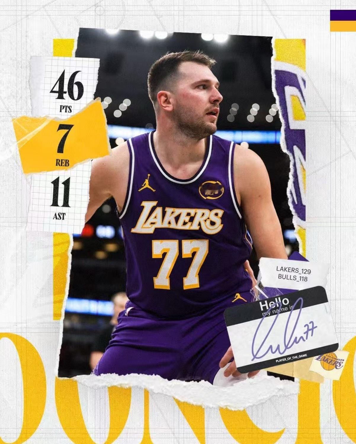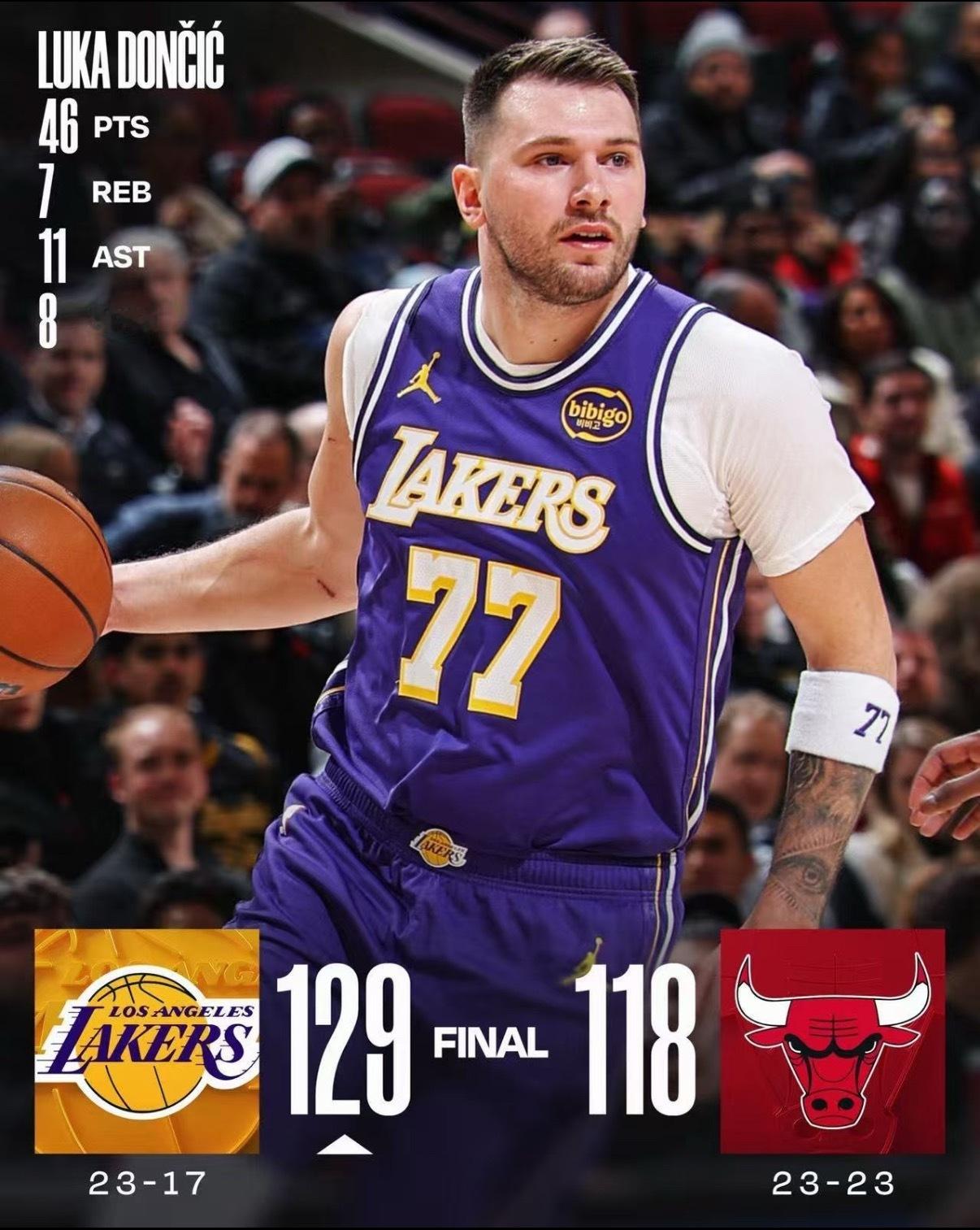 湖人战胜公牛 老詹创41岁半场20+历史纪录,东契奇46+7+11率队终结公牛4连胜,湖人豪取两连胜!