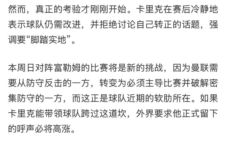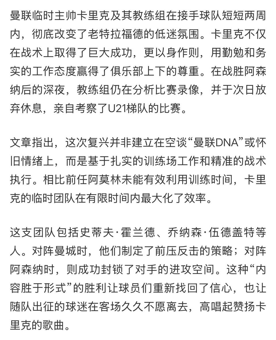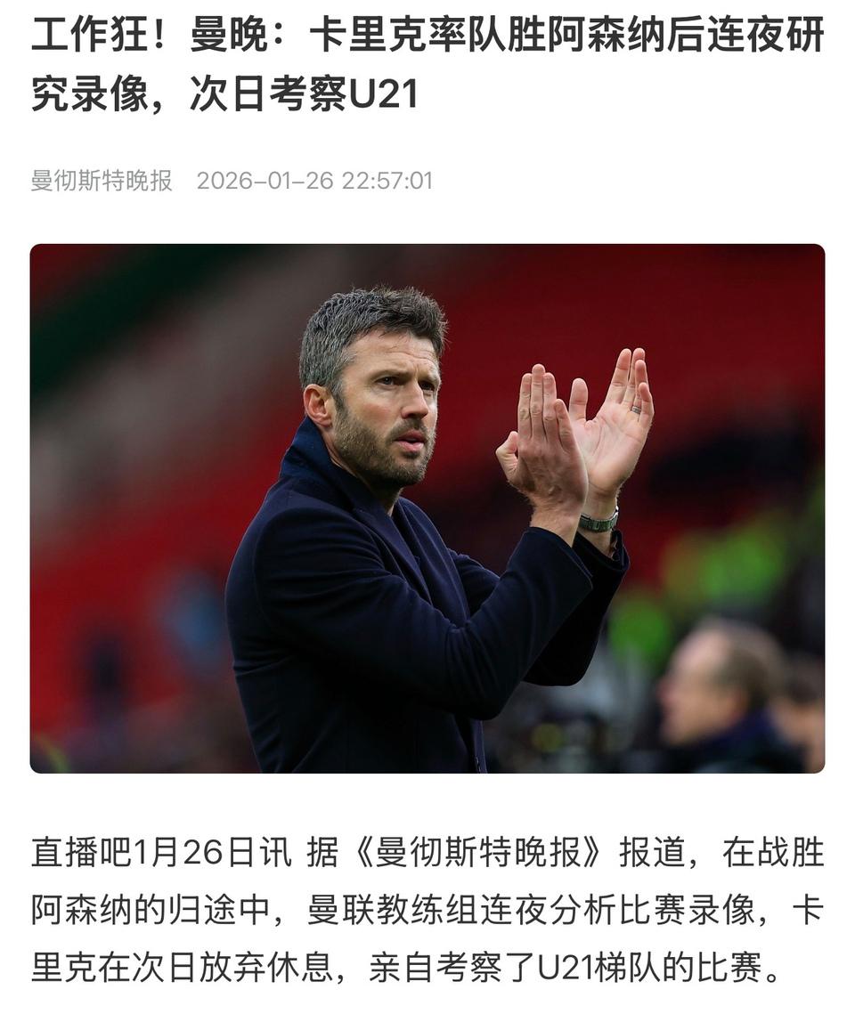 曼联现在有最好的教练卡里克! 他带队获胜之后,马上考察曼联U21球员。 曼联青训再差也会有人才,他要是成功球队就复兴了。 结果基恩,内维尔还说赛季后换教练?? 最起码给卡里克一年时间吧。[可怜]