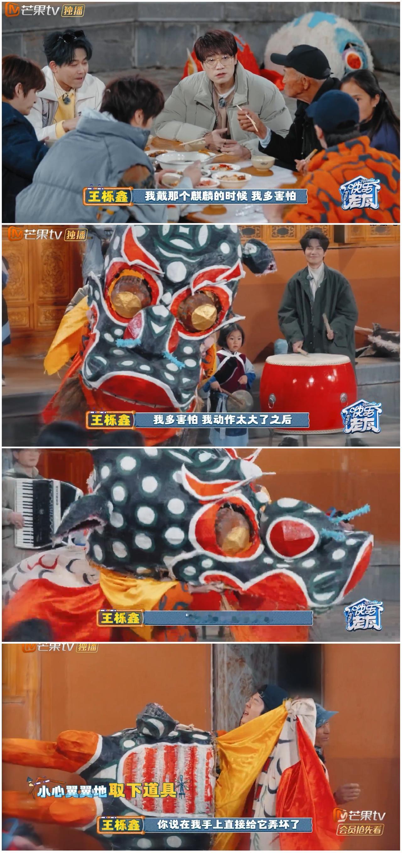 这回王栎鑫摊上大事了, 直言太害怕了, 真不是开玩笑的。 王栎鑫跟陈楚生兄弟几人 向麒麟舞非遗传承人 一位85岁老爷爷学习。 其中最宝贵的是麒麟头道具, 是这位爷爷与父亲一起制作的, 至今已经细心保存了四十多年了。 王栎鑫被安排上舞麒麟头的任务。 他每一个步伐都小心翼翼的, 生怕一个步子迈太大了, 把人家的道具毁了, 穿脱道具都很小心, 倍加珍惜。 网友经常刷到某某艺人 佩戴多贵的戒指项链, 生怕弄掉了, 赔不起。 同样的, 在这位爷爷心里这个麒麟头就是无价之宝, 里面蕴含了两代人的宝贵心血。 王栎鑫顿时感到压力山大, 如果有一点损坏了, 就算有钱也无法解决问题呀。 同时他也与这位爷爷深深共情, 尽力献上自己最大的努力去 完成表演任务。 当他出色完成表演的那一刻, 看着这位爷爷脸上的笑容, 他觉得一切都值得了。