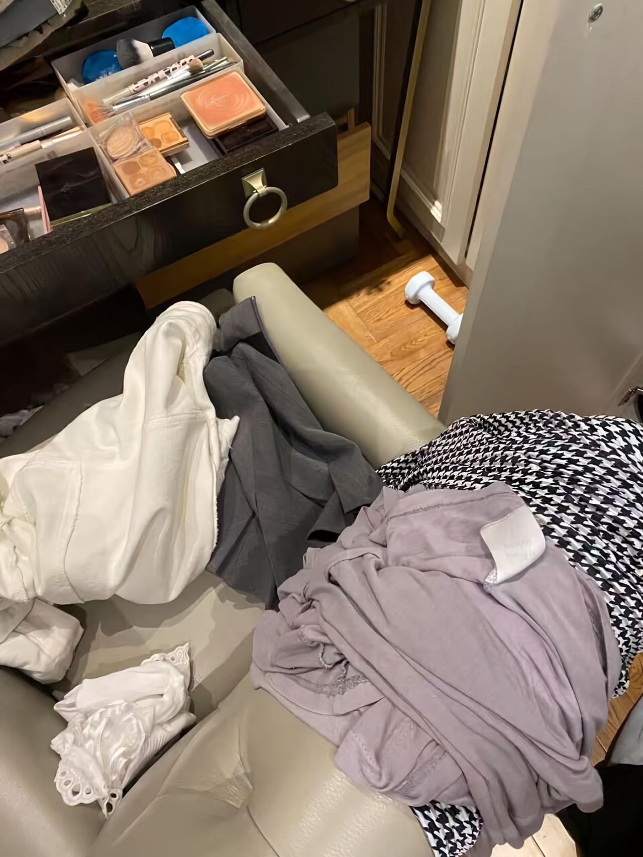 出门前是光鲜亮丽的女神,回家后……这就是我的案发现场![流泪] 真的,谁懂啊?每次想收拾屋子,最后都变成了: 1. 翻出一件旧衣服,试穿半小时。 2. 看到瑜伽垫,想起办了半年还没去的健身卡。 3. 面对满桌的化妆品,陷入“我是谁我在哪”的沉思。 图1是刚进门的状态,图2是折腾了一小时后的状态。明明感觉干了很多活,家里却更乱了。 姐妹们,快告诉我,我不是一个人!你们的椅子上是不是也长满了衣服?[抓狂] 评论区晒晒你们的“案发现场”,让我平衡一下! 生活真相 精致女孩的日常 我的房间乱成团