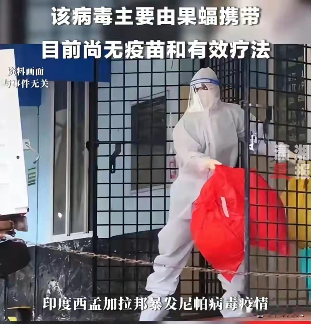 专家:春节出行非必要不前往疫区! 据媒体1月27日报道,印度西孟加拉邦近期暴发尼帕病毒疫情,正在持续升级,目前已有5人确诊,近100人被紧急隔离。更值得警惕的是,这种病毒可通过飞沫和唾液在人与人之间传播,且致死率达40~75%,成为全球公共卫生领域的焦点隐患。目前,我国虽尚未报告本土病例,但部分地区存在病毒天然宿主果蝠,病毒离我们远吗? 因此,专家建议,春节非必要不外出,不跨境出行到高危地区旅行。 尼帕病毒疫情高峰临近,我们在春节期间出游,应该有哪些注意事项需要知道的? 一,弄懂尼帕病毒疫情传播途径有哪些? 尼波病毒疫情传播途径有三种:动物接触传播、消化道传播、可能人传人。 尼帕病毒的寄托宿主,主要是果蝠和猪、牛、马等动物。因此,我国各地的果园里都存在有大量的果蝠这种动物;我国农村有猪、牛、马等牲口。因此,春节期间,千万不要到果园里是摘果子,去游玩,不要到农村地区接触猪、牛、马等牲口。 农村的朋友们,家里有果园,有养殖的牲口,千万要注意,在采摘水果的时候,在果园里劳动的时候,要做好人身的劳动保护,不要直接去接触果树和果子,避免果蝠的粪便污染,避免果子和果树带有病毒。在喂牲口的时候,千万不要用手直接接触猪、牛、马等动物的身体,劳动过后要多勤洗手,勤换衣,避免身体感染上了病毒。 二,大家在春节期间吃水果的时候,一定要先将水果用清水冲洗,避免果蝠的粪便污染了水果表皮。在吃生鲜食物的时候,一定都要清洗干净,煮熟煮透才能食用,避免食物上面被一些不明动物污染,带有病毒。 三,大家在出门的时候,一定要记住戴好口罩,做好自我防护,千万不要到人多的地方去玩儿,去凑热闹,避免染上了一些不明的病毒,避免生病,同时要勤洗手,勤换衣服。 四,大家春节出境旅游的时候,千万记住不要是印度、孟加拉国、尼泊尔、泰国、马来西亚等东南亚国家,因为那里离尼帕病毒疫情发源地太近,保护自己的身体健康是非常重要的。 以上是本人观点,如有不妥,请大家在留言区中留下你宝贵的意见,并积极参与评论,特邀请大家关注尼帕病毒疫情状况。