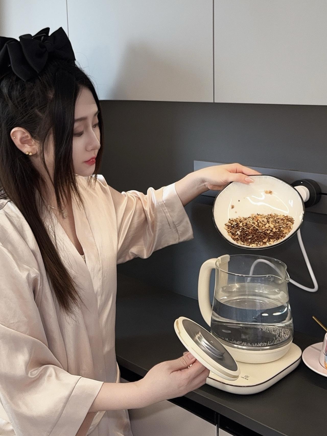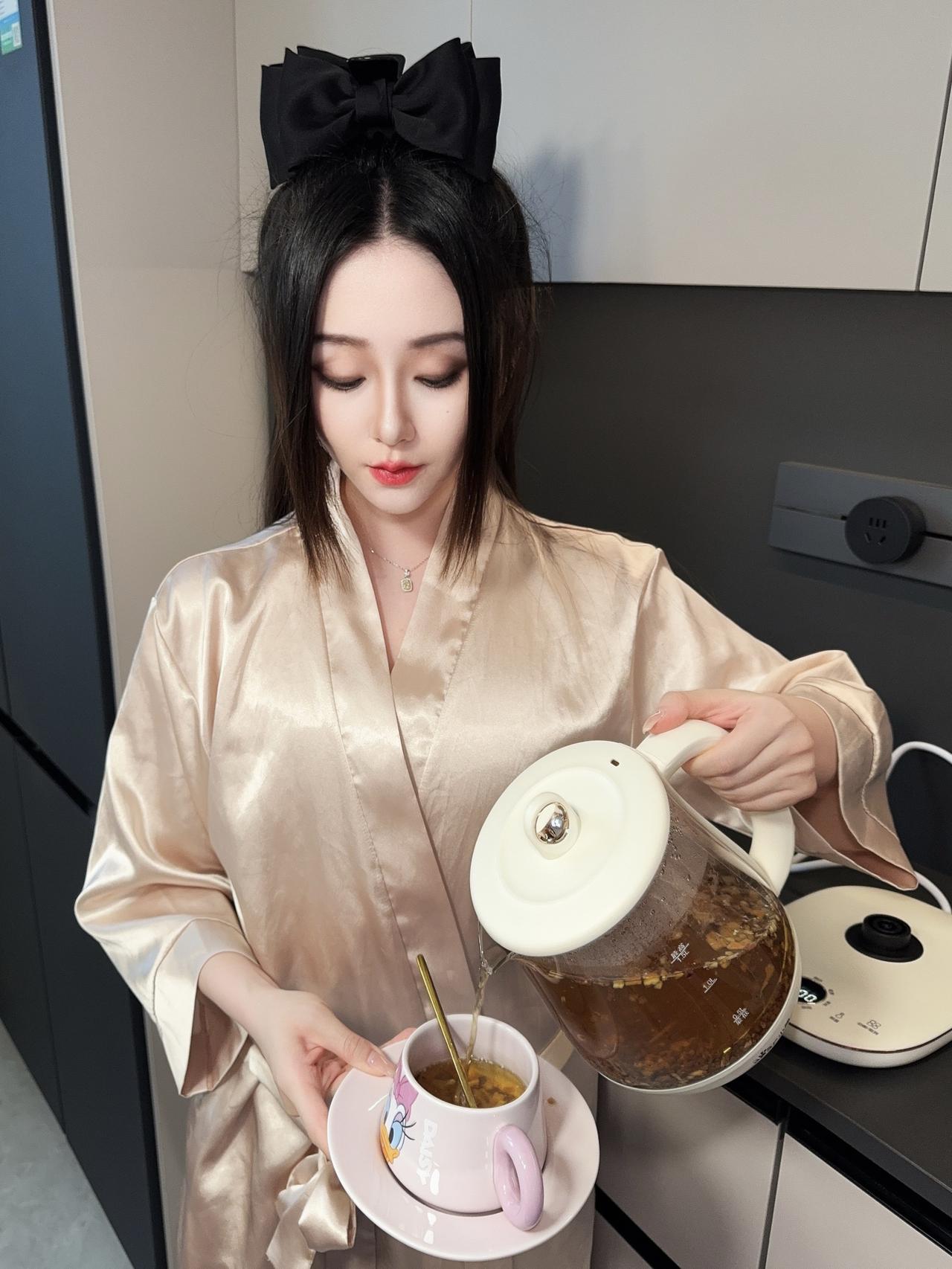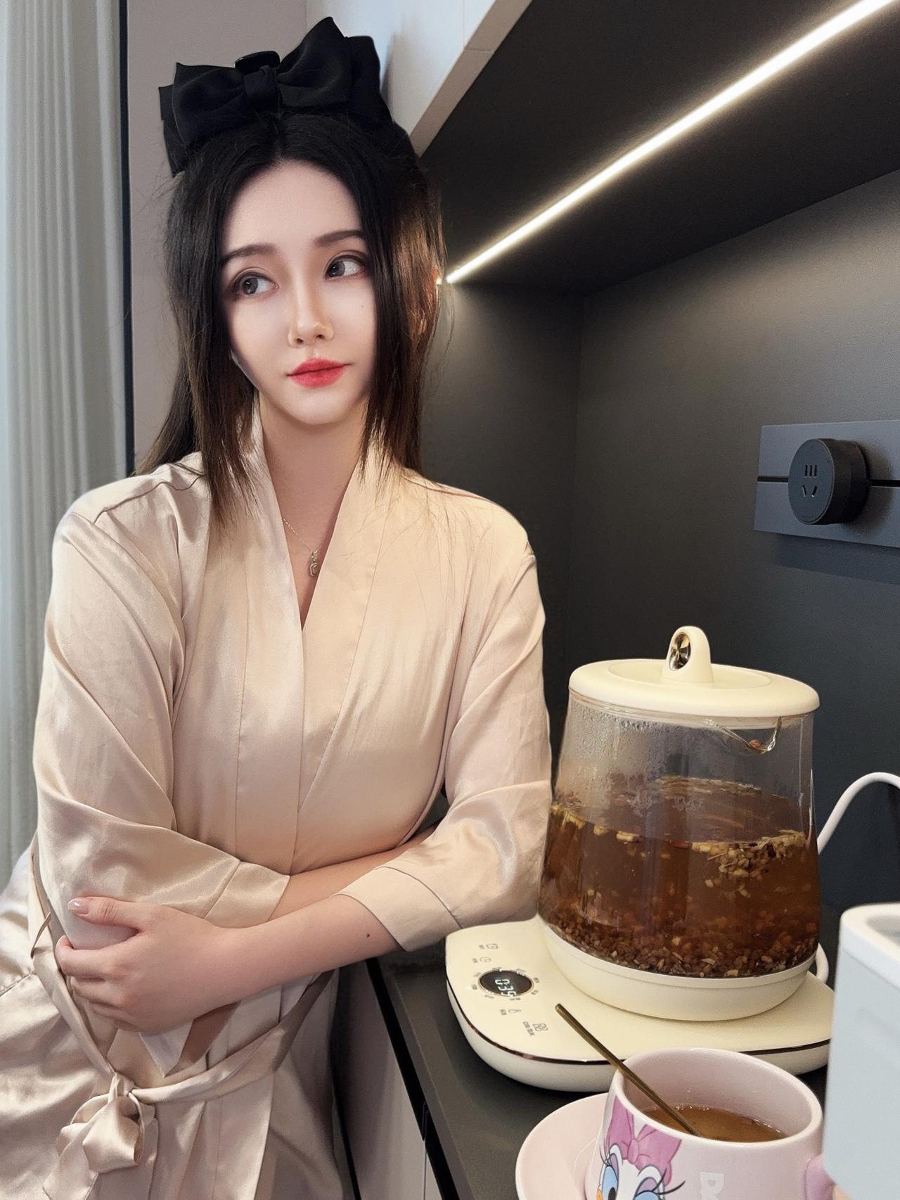 “今日份优雅:浅金吊带+珍珠装饰,浴室自拍也能拍出杂志感📸”浴室里的优雅,无需