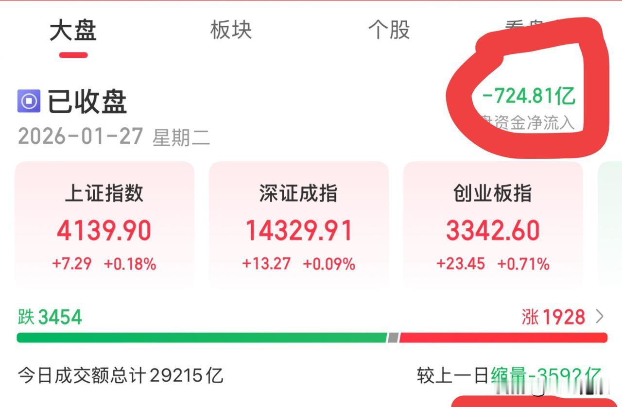 明日大盘走势推演:今日大盘缩量是好事,明日或小幅上扬 一、今日盘面信息 今日大盘:三大股指集体上涨,沪指涨0.18%,深成指涨0.09%,创业板指涨0.71%,成交额29215亿元,缩量3592亿元,三市超1900只个股飘红。 指数趋势:综合技术指标看,沪指处于上升趋势,深证成指为上升趋势。 市场情绪 :今日沪深两市成交额为28949.21亿元,较前个交易日呈下降态势,整体减少了10.87%,市场成交热度有所降低。 资金方面:大盘资金流出700多亿沪市主力资金流出108.43亿元,深市净流出100.98亿元。流出幅度较昨日减少。 二、影响股市的消息 两部委推进应急管理装备创新,强调要与人工智能、5G、大数据、物联网、卫星互联网、北斗和先进计算等新技术融合创新。 商务部将出台扩大入境消费政策措施。利好大消费板块。 新闻出版署公布2026年1月份国产网络游戏审批信息,共182款新游在列,包括177款国产游戏、5款进口游戏,利好游戏板块。 三、明日大盘走势推演 今日大盘缩量是好事,动辄3万多亿的成交量不可持续,从盘面上看三大股指均收带长下影的十字星,企稳反弹迹象明显。 目前的大盘特征是跌不下去,也不可能大涨。 预计明日大盘:会延续今日反弹走势,小阳线或十字星报收。 四、操作策略 板块轮动是主要特点,对连续上涨的个股可以减仓或获利了结,对调整中的板块等反弹,前提是一定要是持有相对活跃的主流板块,远离老登板块,同时,防止业绩预告暴雷或不及预期。 免责声明:个人观点,不构成投资建议,股市有风险,投资需谨慎!