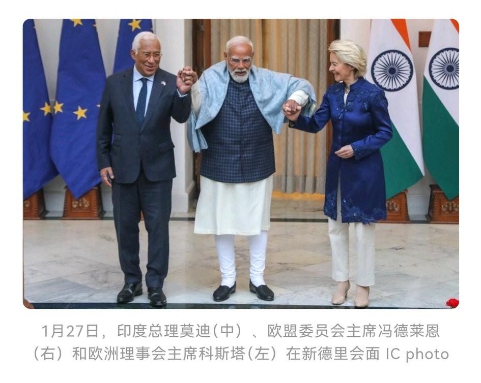 欧盟急病乱投医,为了减少对中美的依赖,和印度达成有史以来最大的自贸协定。 说白了,这协定就是借减少中美依赖的由头抱团,谈判磨了近二十年才成,印度放开车企关税却护着本土电动车,欧盟盯着农产品和市场准入,各有各的小算盘罢了 。 印度崛起是必然的事情,只不过崛起的方式和欧美的掠夺不同,和中国种地打拼不同,印度的崛起方式是靠“骗”。这个骗还和普通的骗不同,这个骗是一种国家层面上的骗。 今晚所有消费,由欧公子买单, 祝福欧公子 。