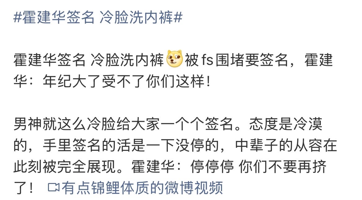 霍建华签名 冷脸洗内裤他都叫“建华”了,老辈子疼人可不就是这样虽然不理解但照做,之前不是还有请客吃饭的吗感觉是那种严格意义上只要缠着追就能追到手的人