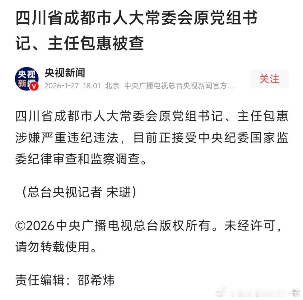 包惠被查四川省成都市人大常委会原党组书记、主任包惠被查!