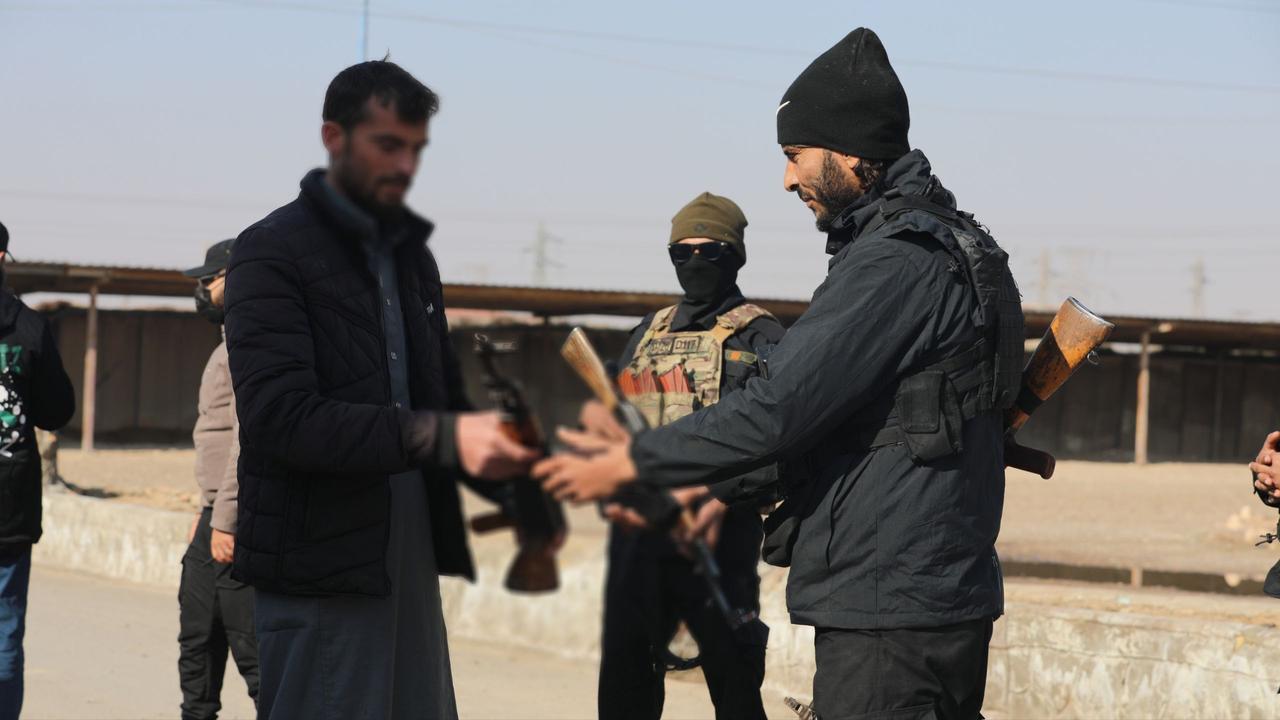 叙利亚政府在拉卡和代尔祖尔开展的一项旨在使前叙利亚民主力量(SDF)成员合法化的计划的初始阶段,包括在两个新建中心进行武器交接和发放重返社会证明。照片显示了户外交接仪式和在叙利亚国旗下进行的室内登记。 这一进程是在2026年1月达成停火协议之后进行的。根据该协议,SDF部队从阿拉伯人占多数的拉卡和代尔祖尔省撤至哈塞克省,并在冲突后将控制权移交给叙利亚临时当局,其目的是将库尔德人领导的武装人员融入国家体制。 早期报告显示,数百名主要为阿拉伯人的前武装人员的安置工作进展顺利,但长期成功取决于能否解决民族矛盾,并确保对被拘留者进行司法审查,正如在阿克坦监狱等设施中开展的类似工作所表明的那样。