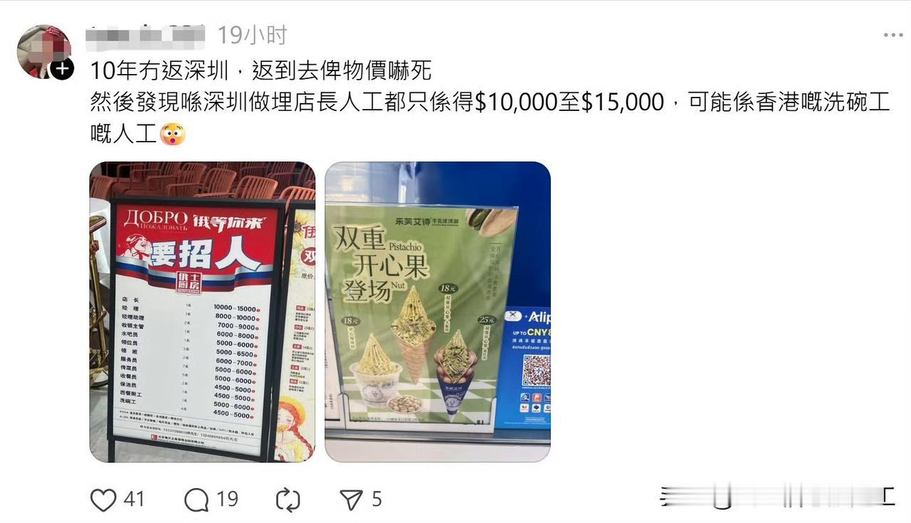 10年没去深圳的香港网友发帖:到深圳发现物价并不便宜,但一看招聘收入竟然跟不上物价,十分震惊。 有网友解释:看项目已经包住宿了,可以剩下交通费,这样算起来应该不算很低。