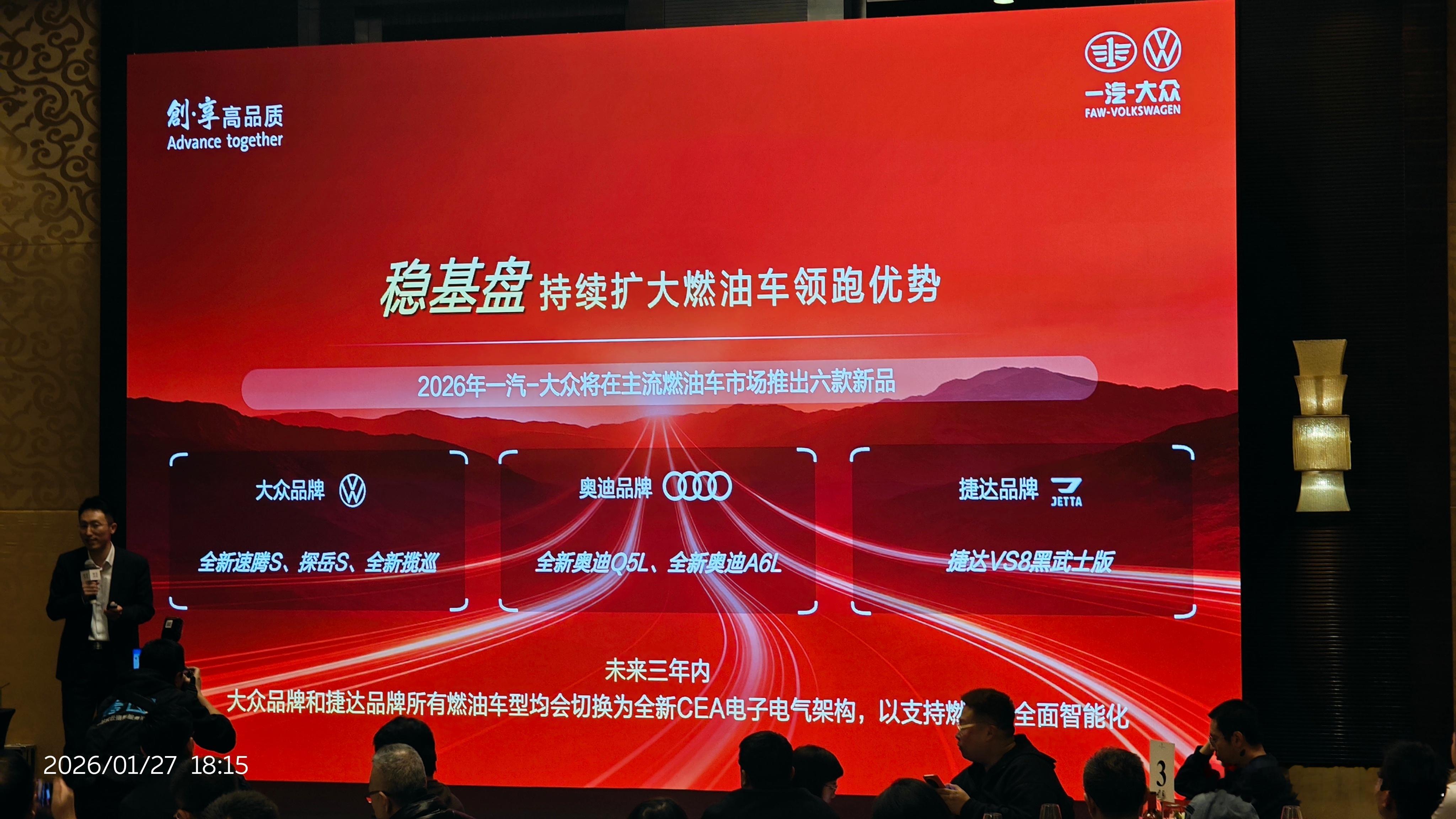 2026年一汽大众要做这些事情,好多新车型一汽大众一汽奥迪一汽-大众捷达 全面发力产品大年 北京·北京四季酒店