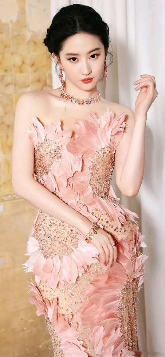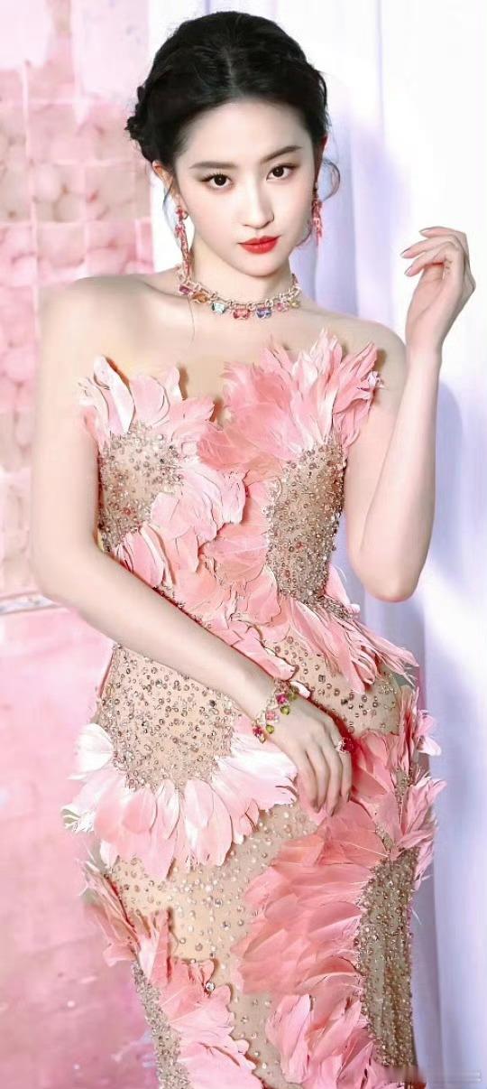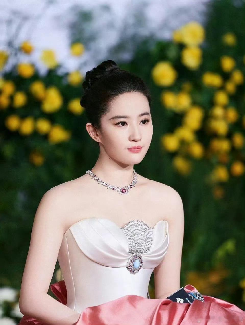 刘亦菲粉色露肩裙由内而外的贵气,整个内娱无人能比