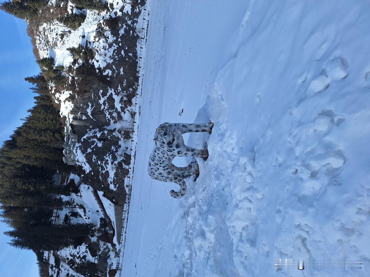 这就是大名鼎鼎的雪豹,我摸它的后颈,它一动不动,因为它从塑形成功后就一直没动过。图1所说的女游客如果像我这样,就不会受伤了。