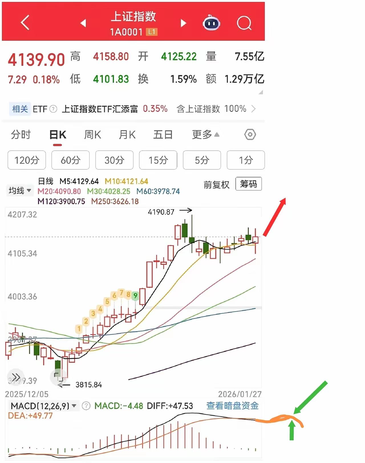 注意了,后半周这波拉升要来了。 今天大盘尾盘虽然回落,差点跌破5天线,但明眼人都能看出主力的心思——月底了,月线不想留上影线,跌不动了。昨天就说过,要是走C浪下跌,低点大概率在前低附近,打漏20天线就差不多了,毕竟5周均线在这儿撑着,想跌到4050根本没时间,周一没破5天线,周二再跌就来不及了。所以早评才说,今天能收出探底回升的K线,后面肯定往上冲,主力这是要做月线的节奏。 既然意图摆得这么明显,大幅下跌基本可以排除了。但也别指望马上就猛拉,还得看恒指的脸色。明天恒指很可能有大动作,说不定直接冲去年高点。今天收盘价都站上11月13日的位置了,算是彻底出坑,下个目标就是10月高点,月底创新高的概率不小。 不过大盘少不了来回拉扯,关键还在证券。中午就说过,下午证券企稳,或者大盘收盘站上4130,昨天减仓的就能接回来。下午证券已经打出60分钟低点,向下的可能性越来越小,明天只要一拉,60分钟底背离出来,肯定反身向上,再冲1661不是问题。 但证券大概率不会一口气冲上去,更可能震荡着来。你觉得要创新高了,它就冲高回落;你一卖,它立刻创新高逼你追。这种套路见多了,后面三天要是证券发力,说不定哪天突然拉根大阳线,直接把大盘带上去。毕竟证券的月线太需要修复了,看图就懂。 提醒一句,说证券不是让你买,是让你盯着。真到拉爆的时候,千万别追,该卖的得卖。 至于什么时候大幅减仓?看大盘创新高后,4280附近哪天MACD出标准顶背离,就是二次顶背离那下,那是逃命点,图里标得明明白白。 总有人喷“涨了看涨跌了看跌”,懒得解释。昨天专门写文章把逻辑拆烂了,不看不学就知道瞎吵,这种人别来沾边。还有问“半导体设备不是说走坏了吗?今天怎么大涨”——这不跟大盘一个道理?前面走坏了,但现在拿着的别乱动,等创新高,走到类似绿色箭头那位置,跑就对了。 别当小白瞎喷,市场规律就在这儿,看懂了吃肉,看不懂只能被割。后半周盯紧了,拉升要开始了,但节奏得踩准,别乱追。